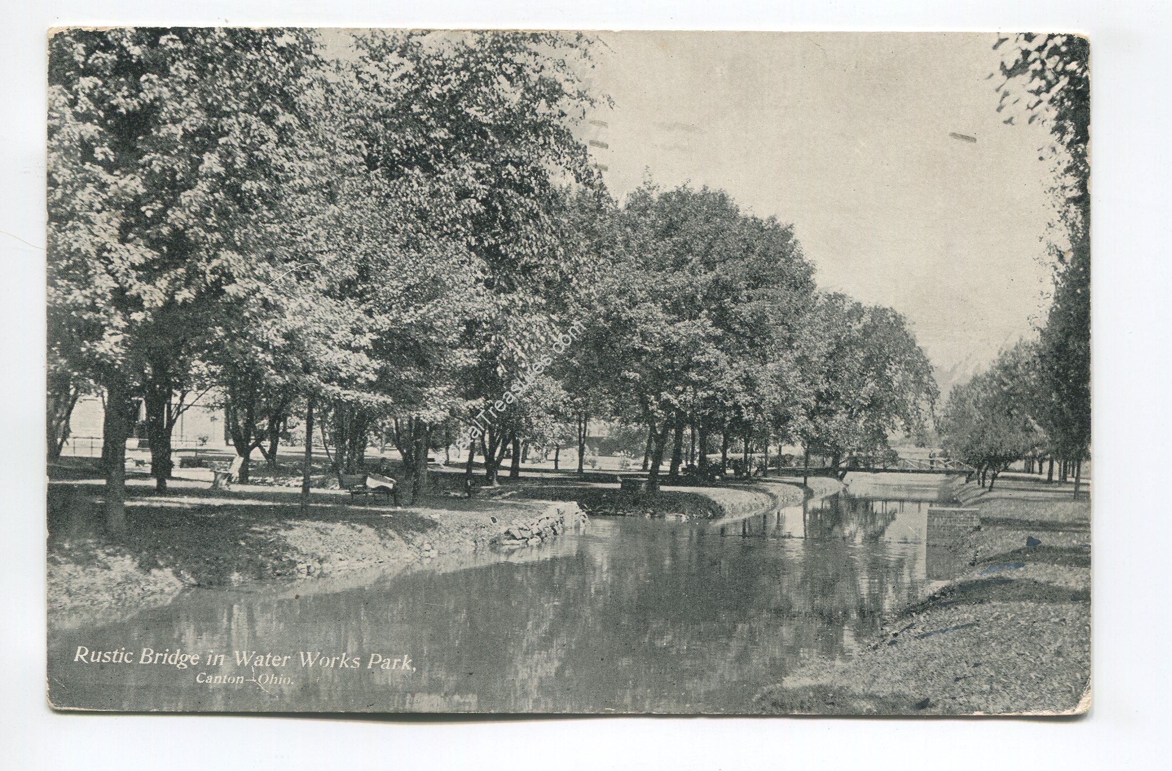 Rustic Bridge in Water Works Park Canton Ohio postcard