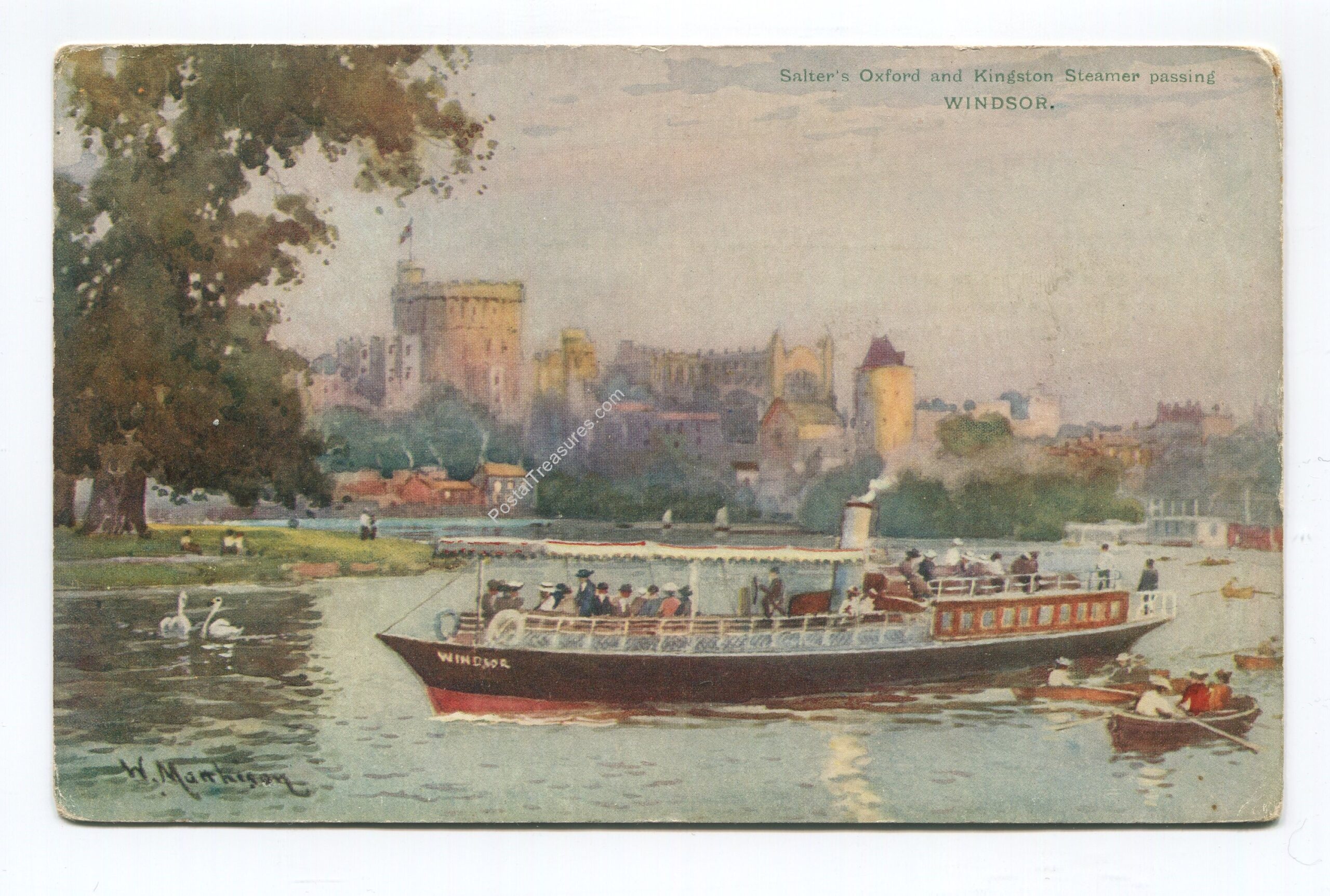 Salter’s Oxford and Kingston Steamer passing Windsor postcard