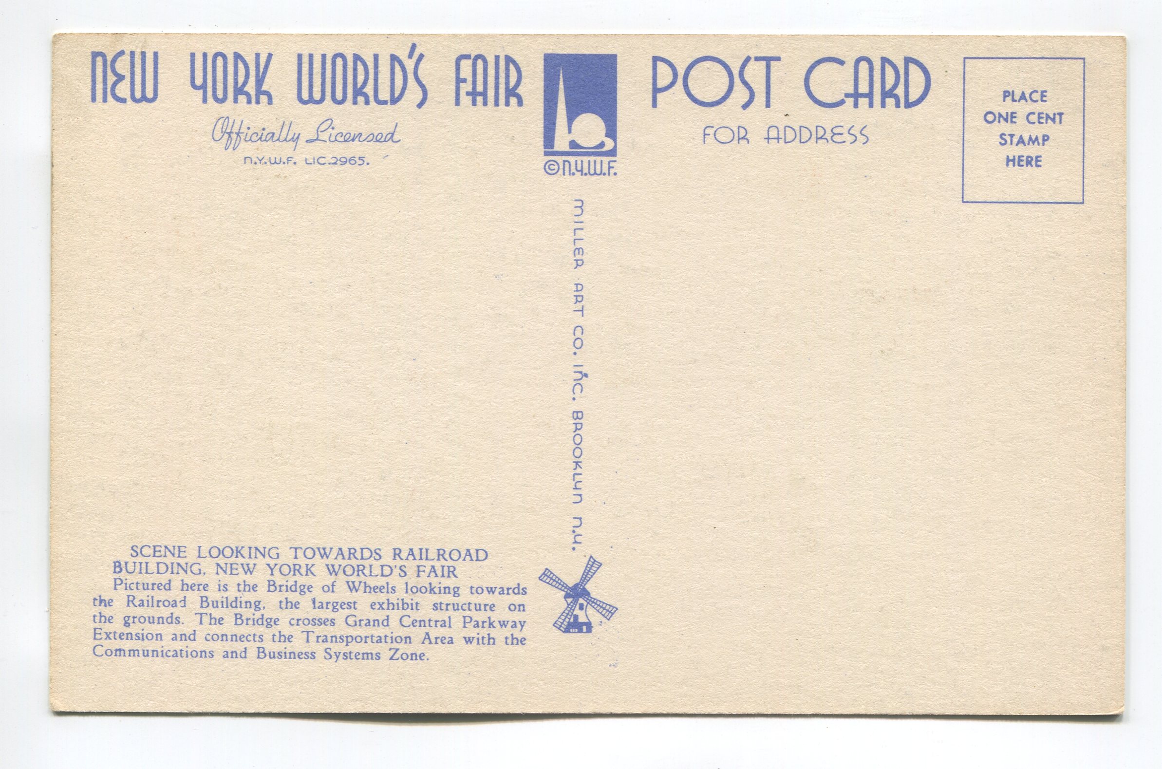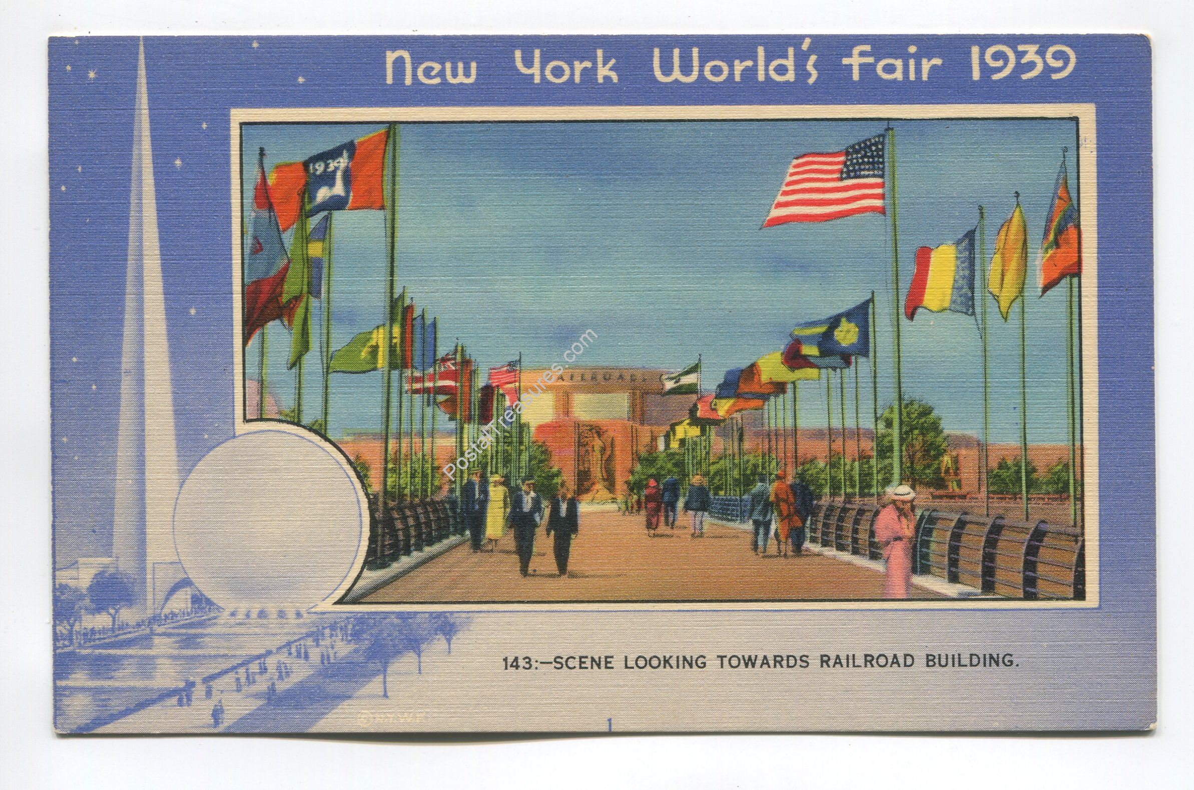 Scene looking towards Railroad Building New York Worlds Fair postcard