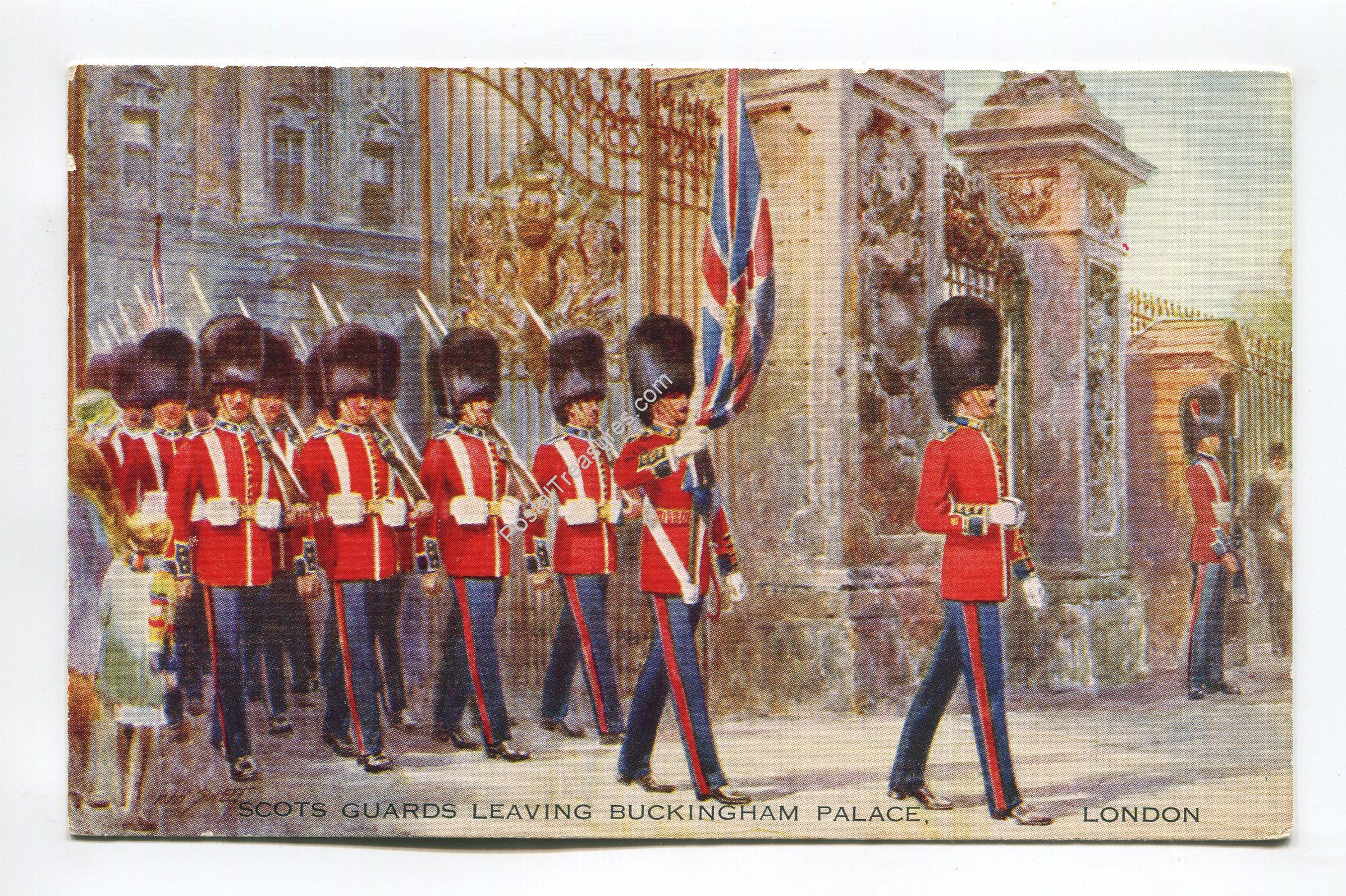 Scots Guards leaving Buckingham Palace London postcard
