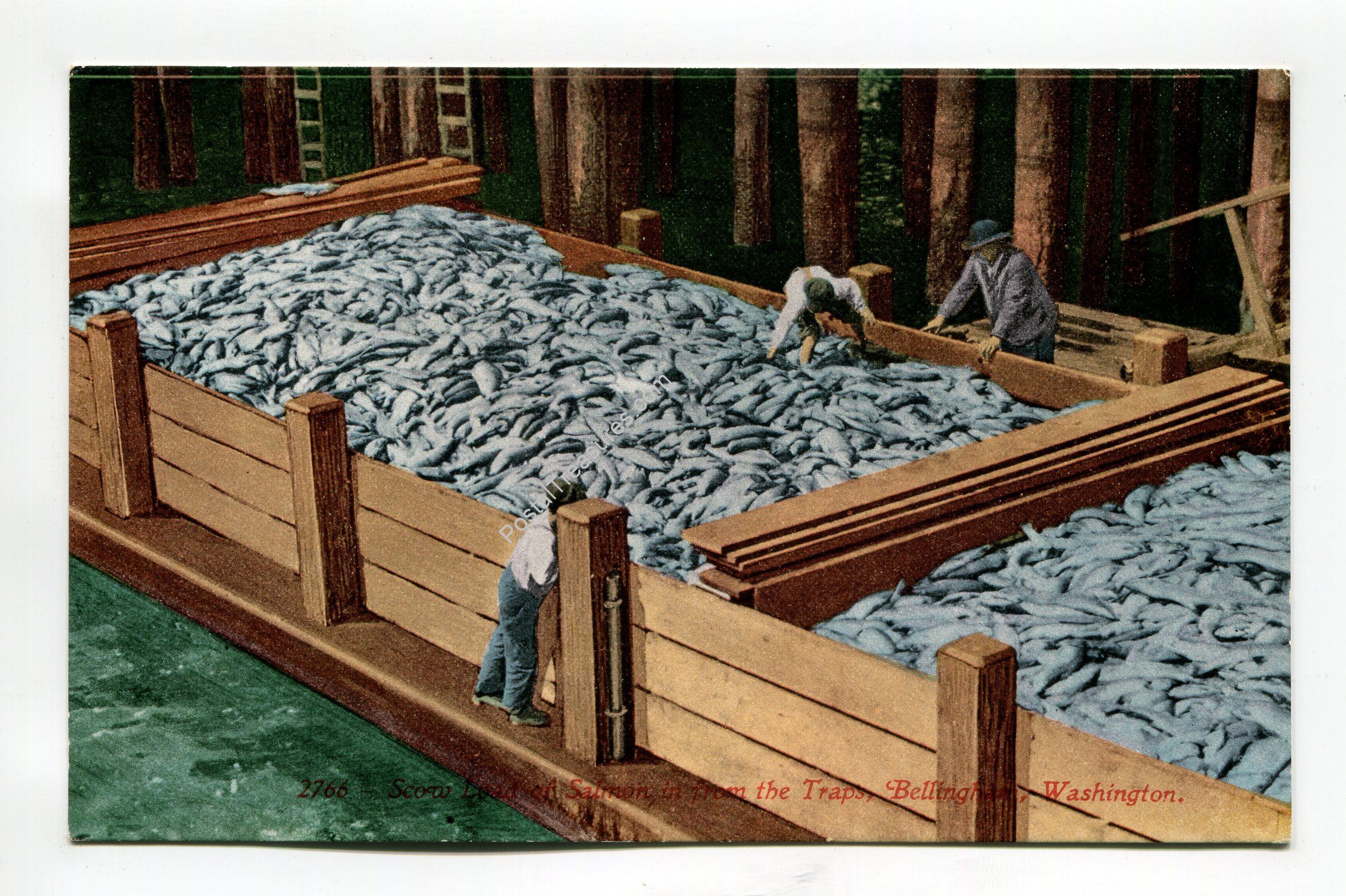 Scow Load of Salmon in from the Traps Bellingham Washington postcard