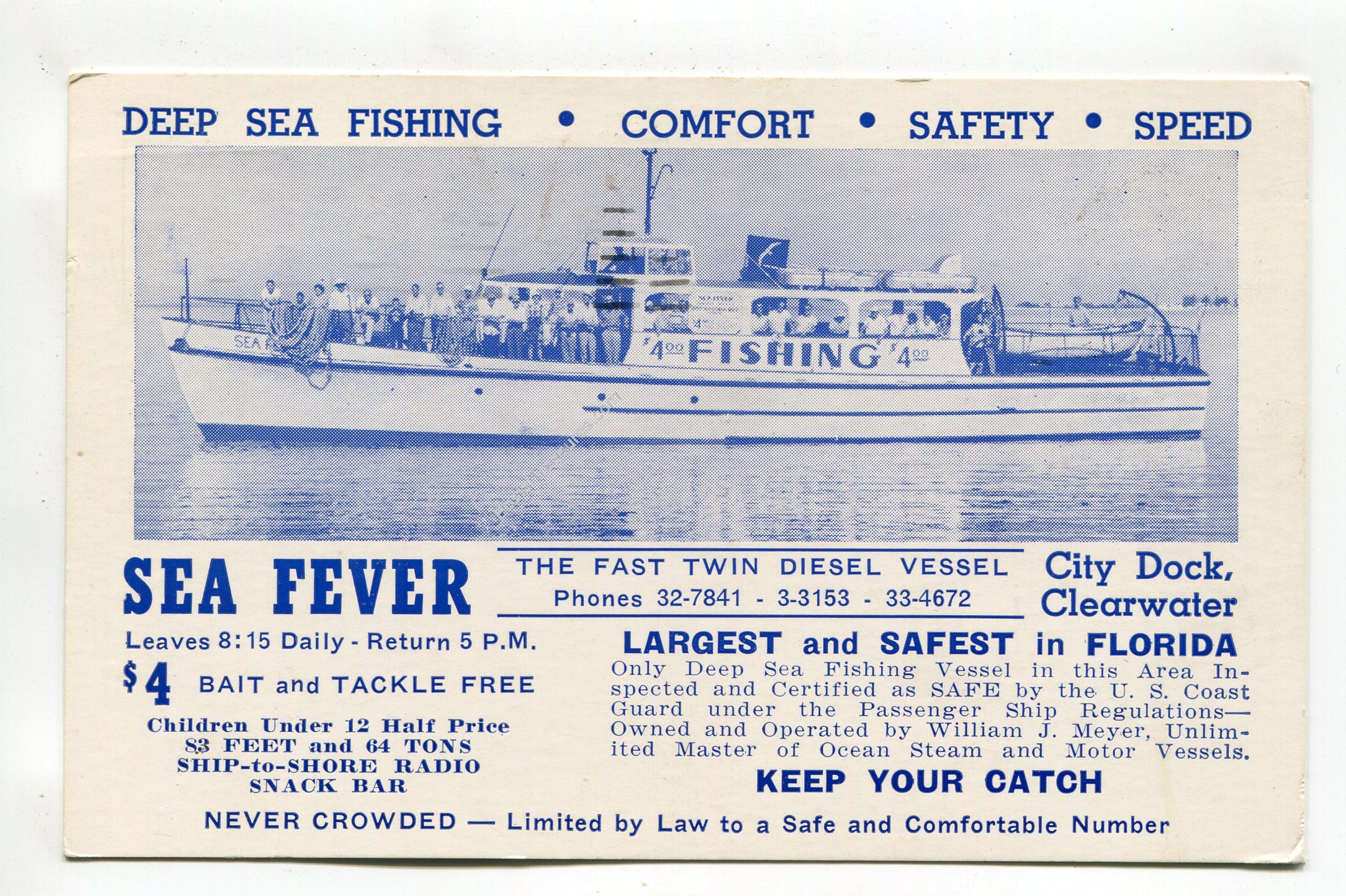 Sea Fever the fast twin diesel vessel City Dock Clearwater Florida postcard