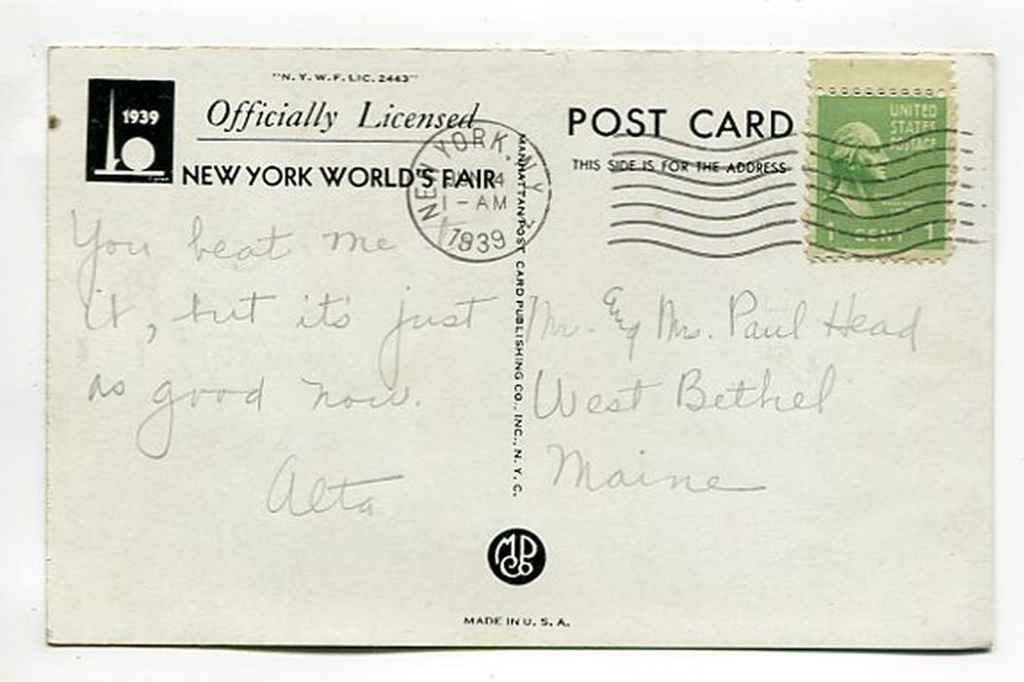 Condition – noticeable corner/edge wear,cancellation impression visible on card front, soiling/marks