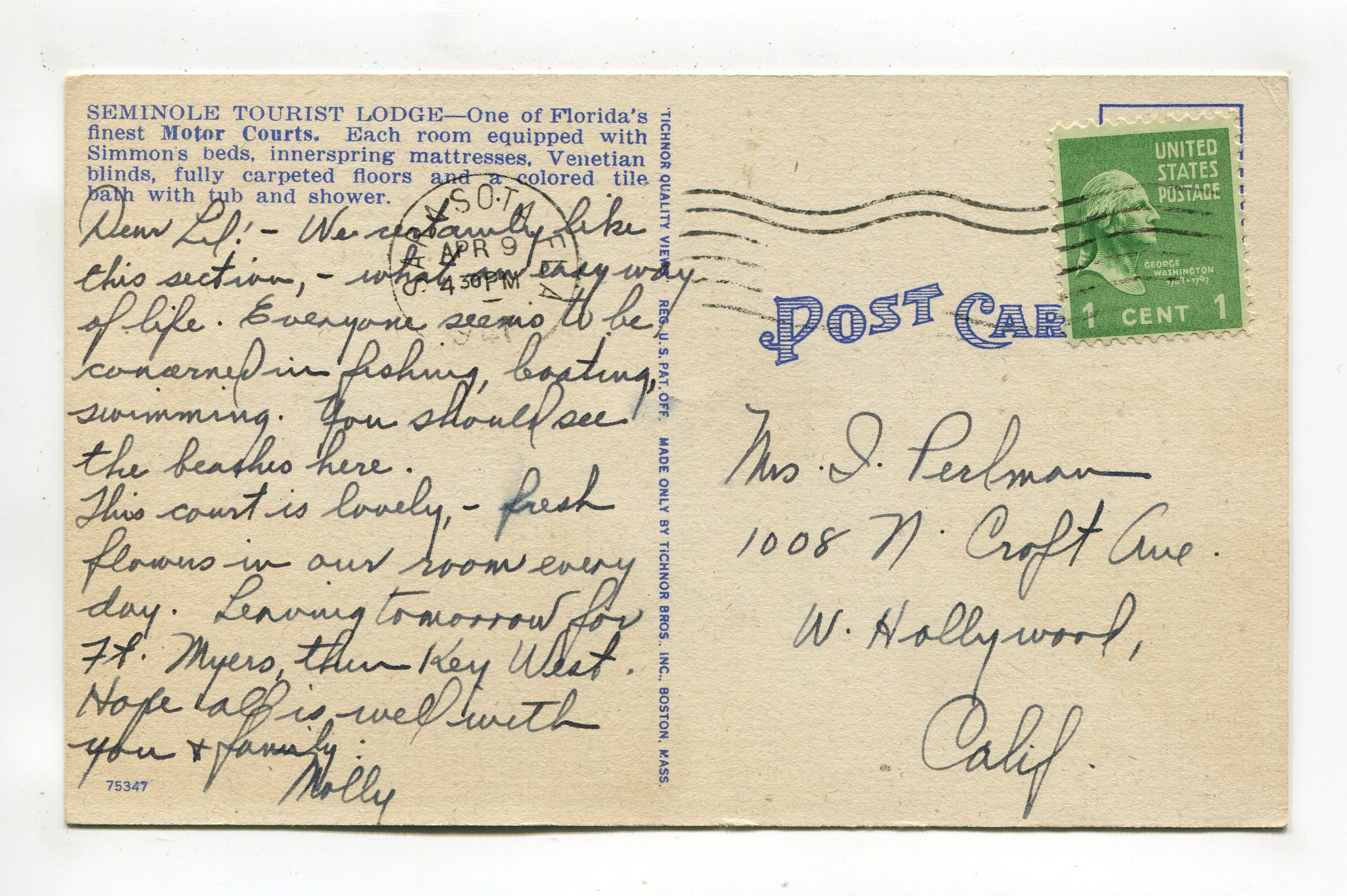 Seminole Tourist Lodge Broadway Corner 23rd Street Sarasota Florida postcard