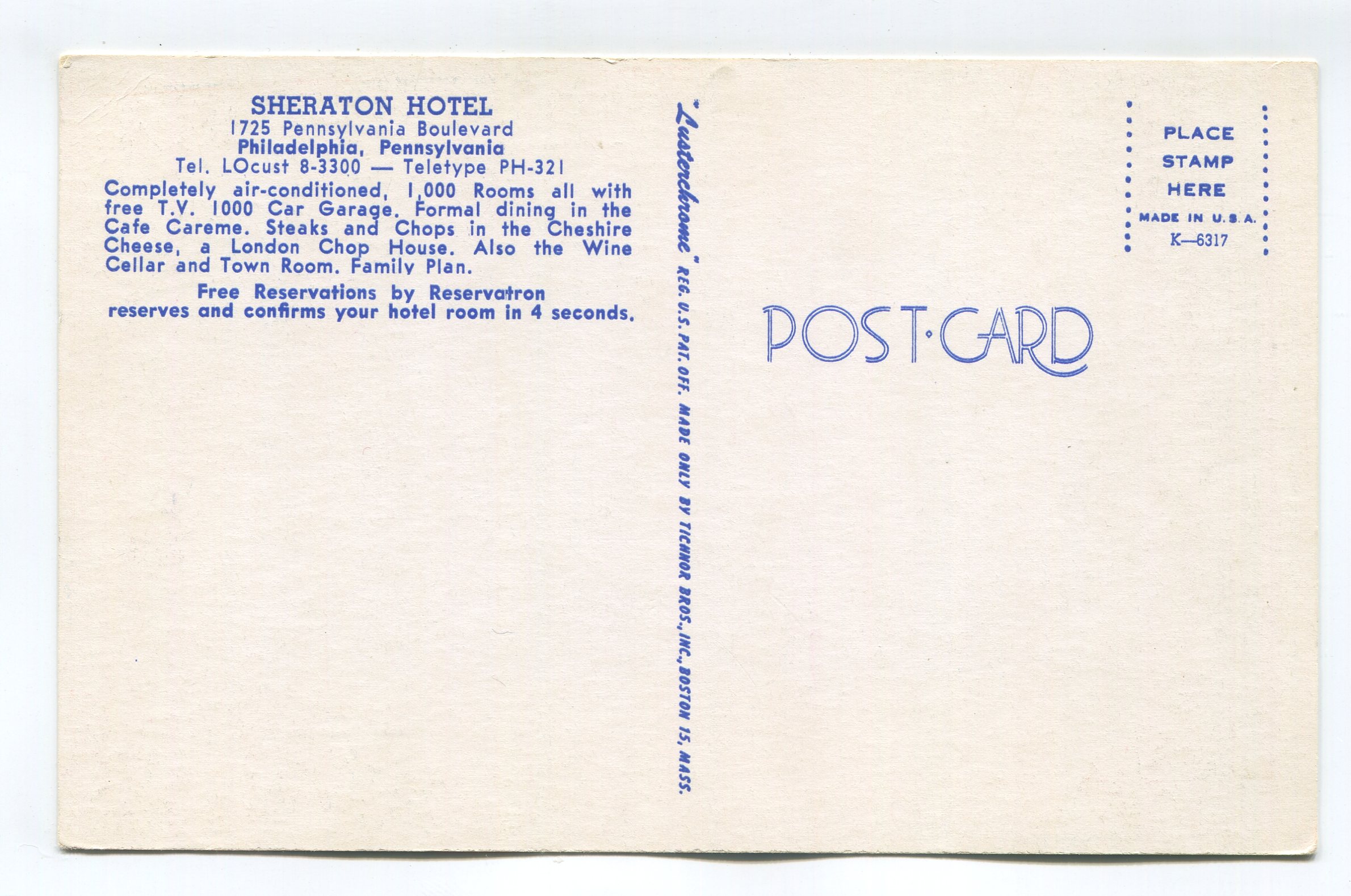 Sheraton Hotel Philadelphia Pennsylvania postcard