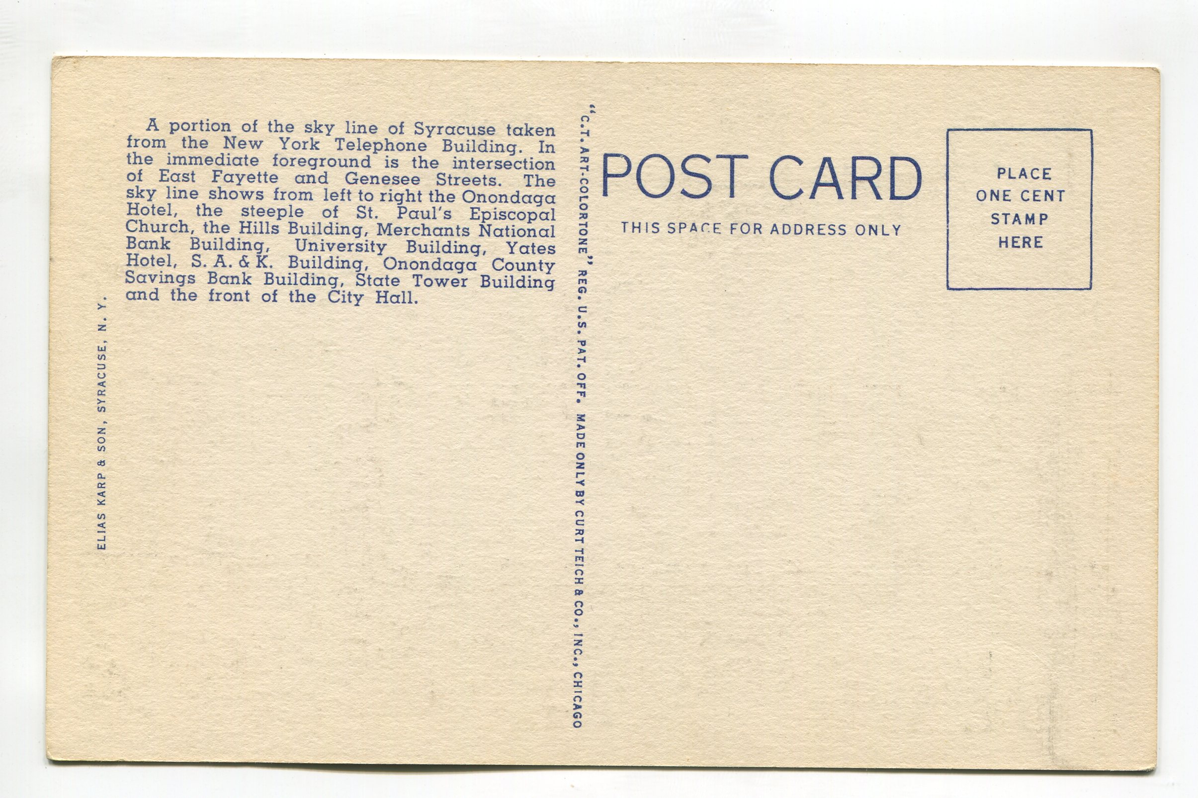 Skyline of Syracuse from New York Telephone Building Syracuse New York postcard