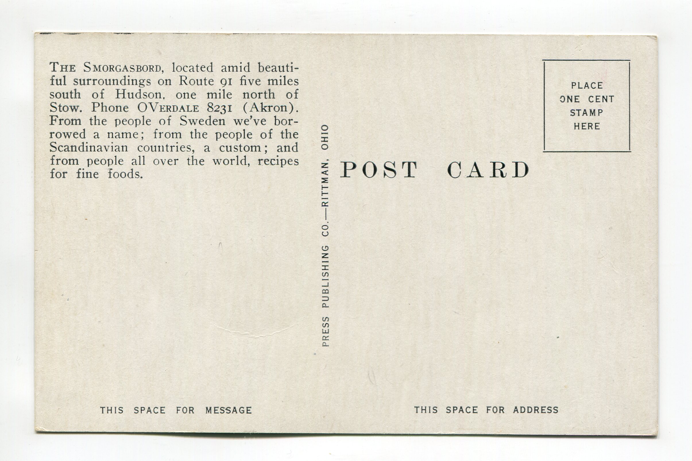 Smorgasbord Stow Ohio postcard