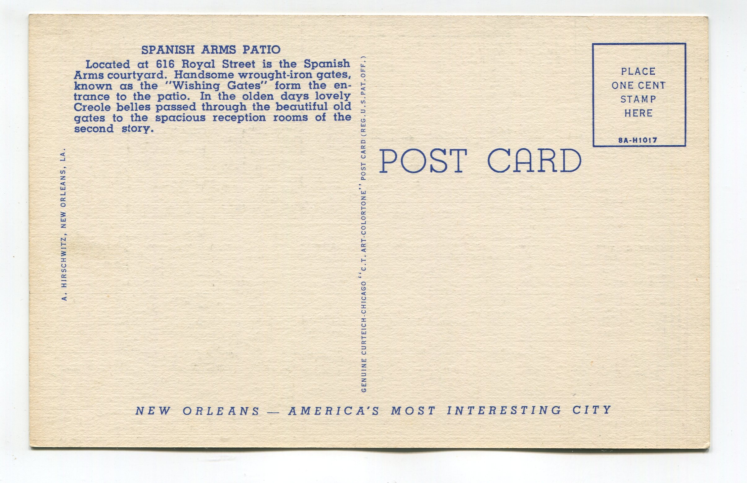Spanish Arms Patio New Orleans Louisiana postcard