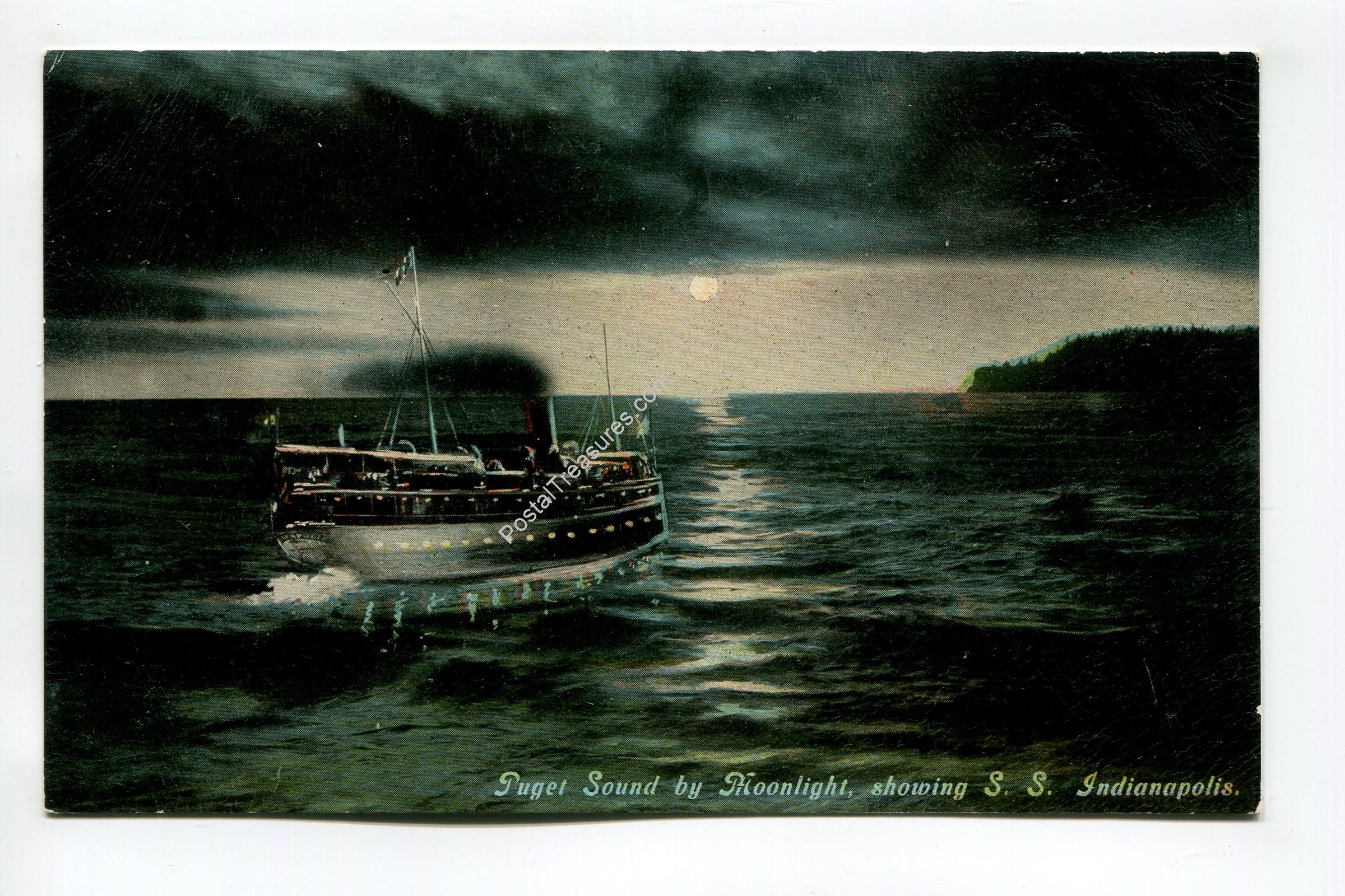SS Indianapolis Puget Sound by Moonlight postcard