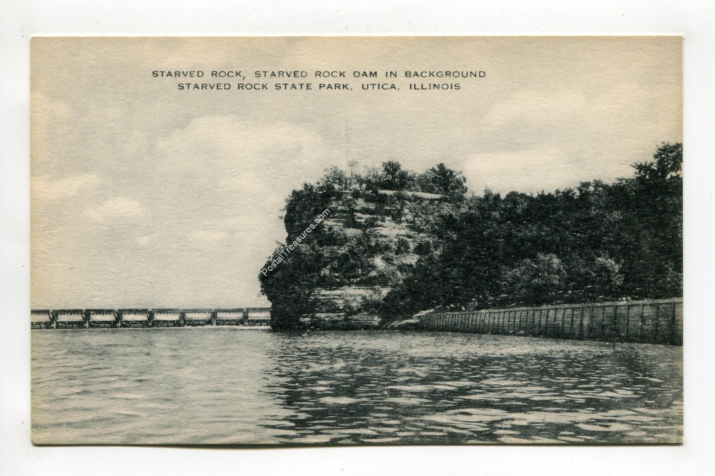 Starved Rock Starved Rock Dam in background Starved Rock State Park Utica Illinois postcard