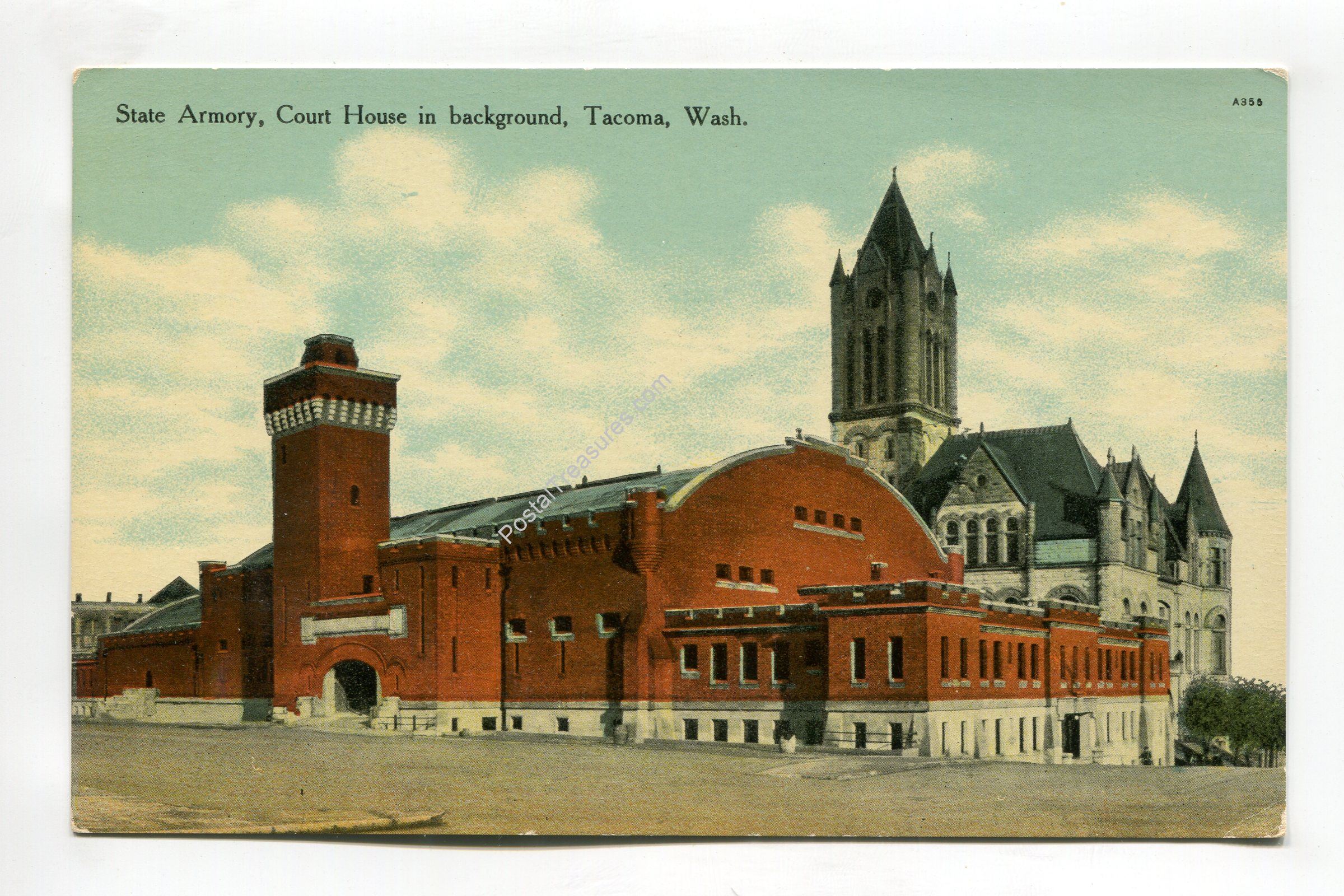 State Armory Court House in background Tacoma Washington postcard
