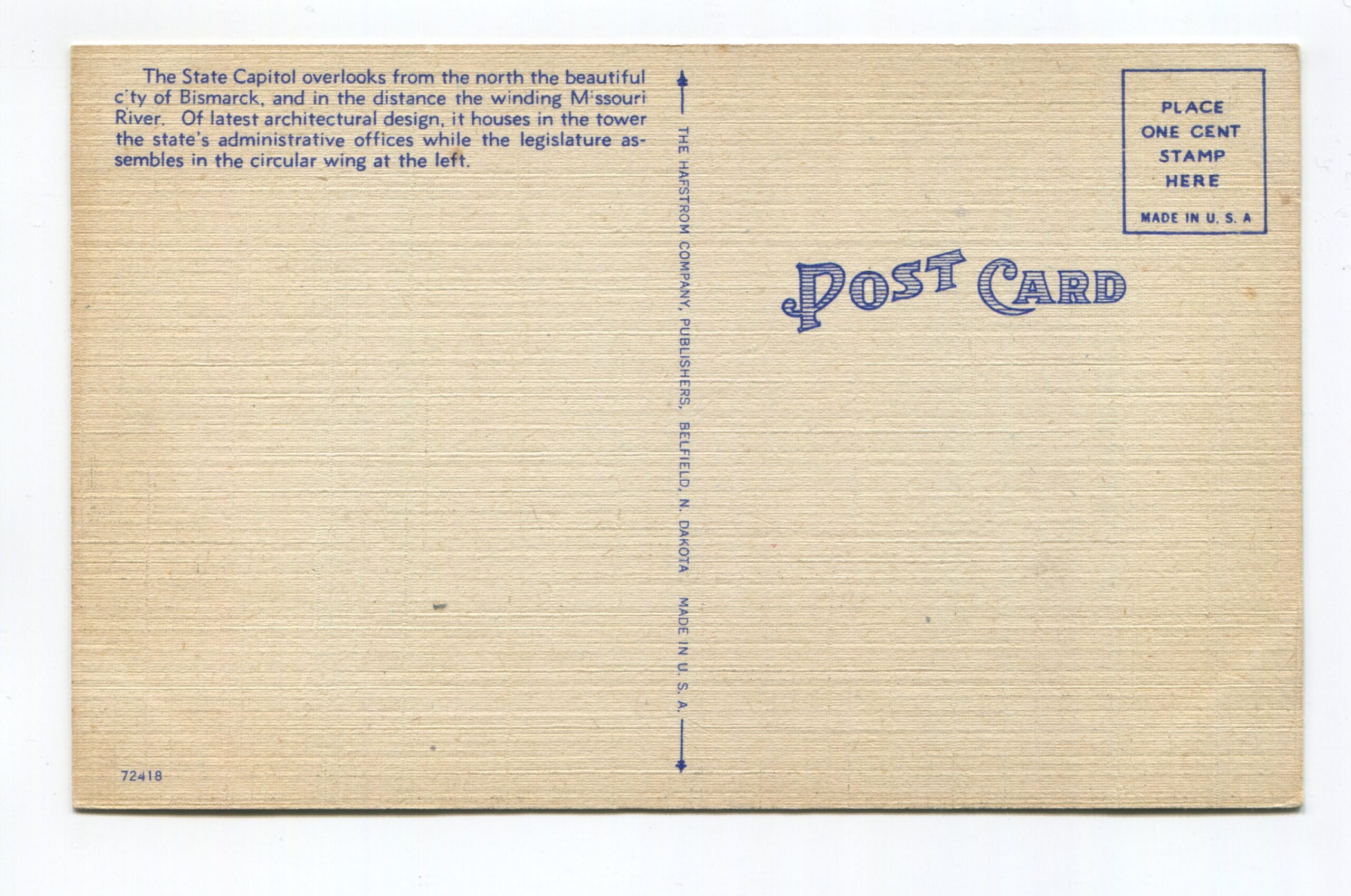 State Capitol Bismarck North Dakota postcard