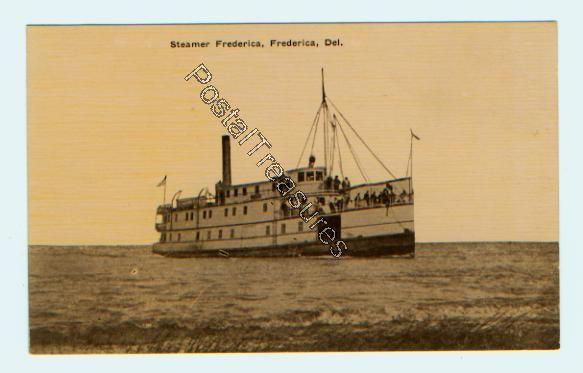 Condition – corner/edge wear, diagonal crease above ship front, album impressions around corners, soiling/marks