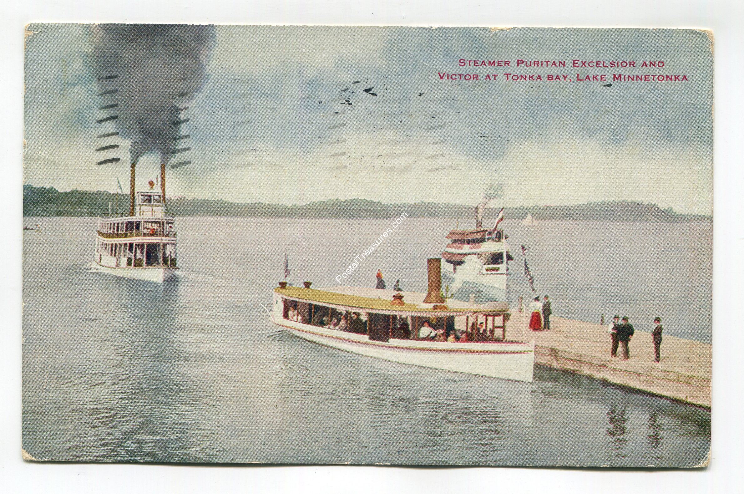 Steamer Puritan Excelsior and Victor at Tonka Bay Lake Minnetonka Minnesota postcard
