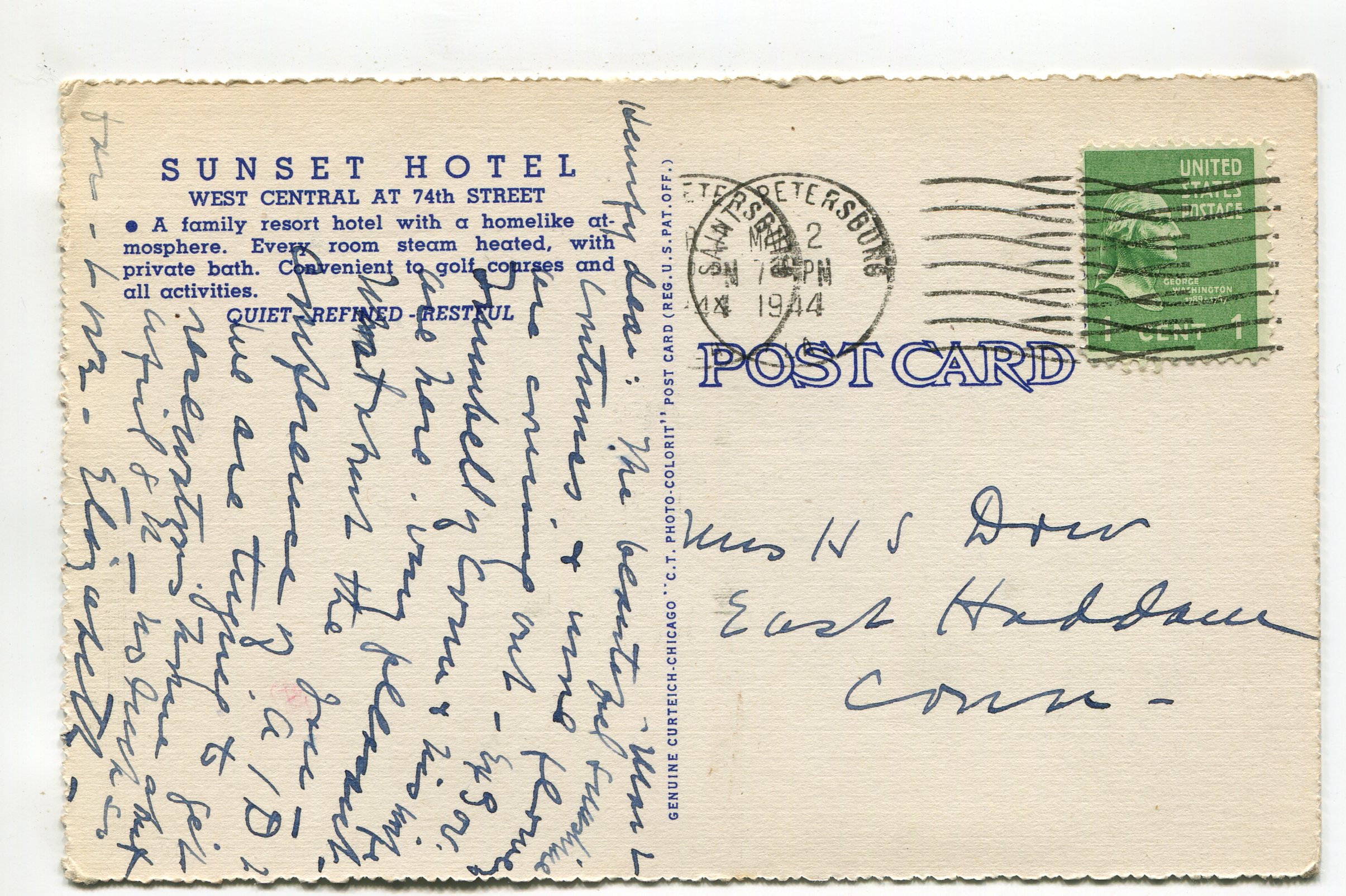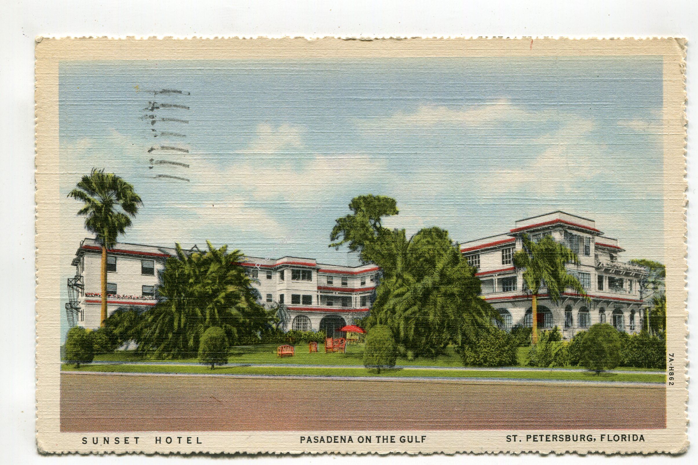Sunset Hotel Pasadena on the Gulf St Petersburg Florida postcard