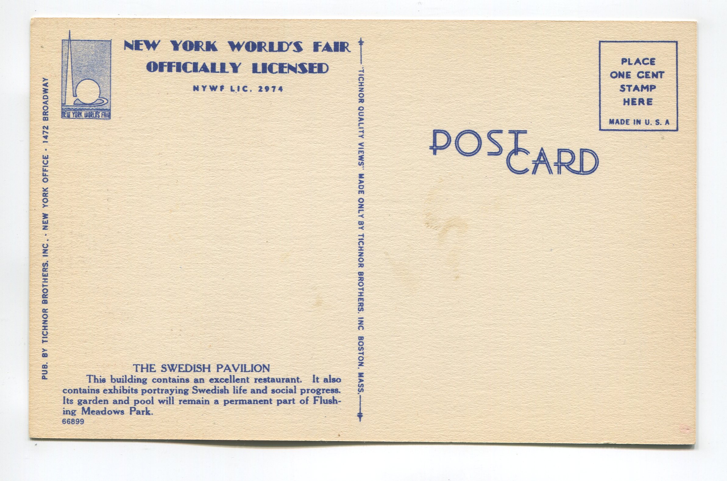 Sweden House New York Worlds Fair postcard