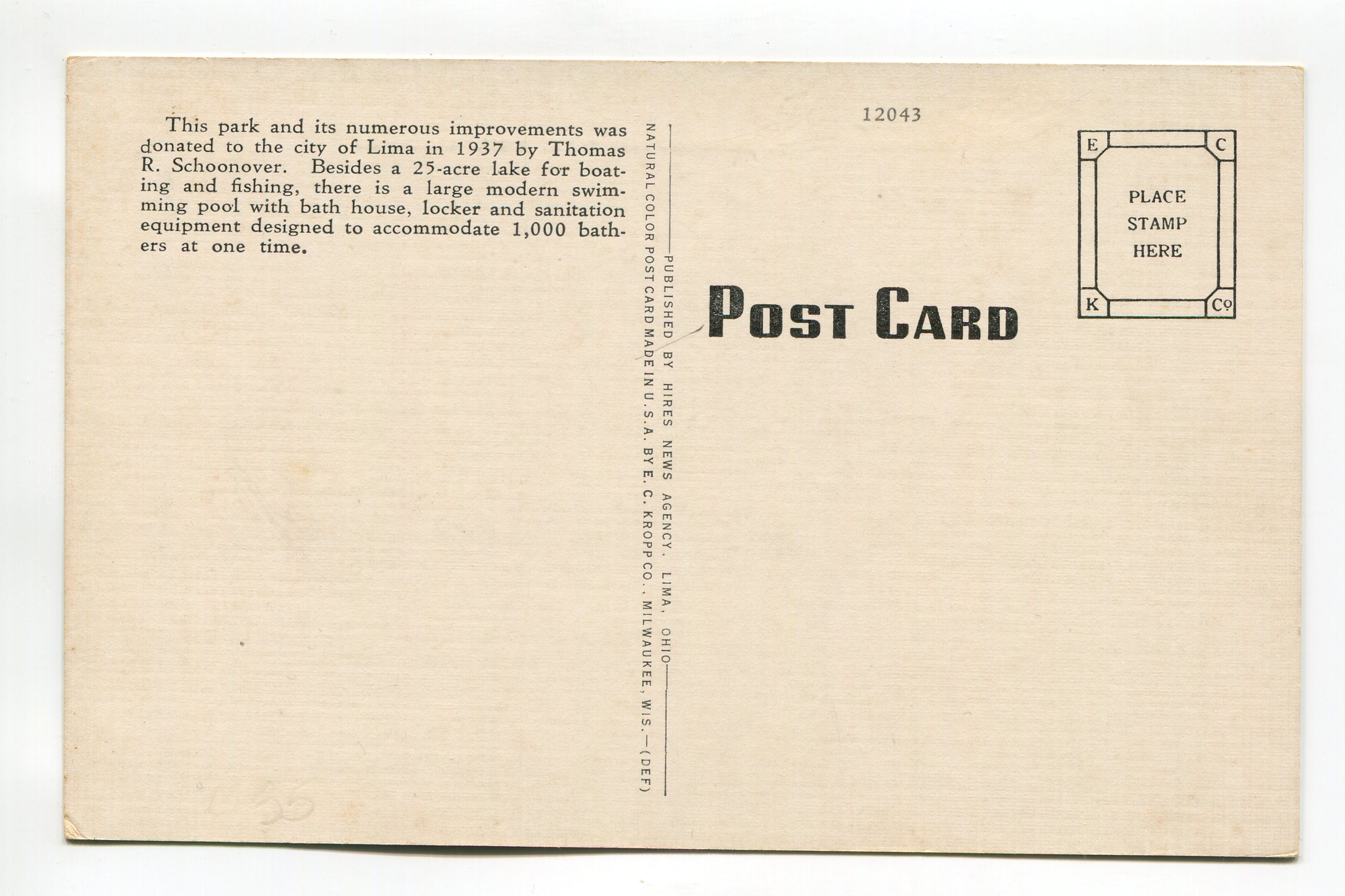 Swimming Pool Schoonover Park Lima Ohio postcard