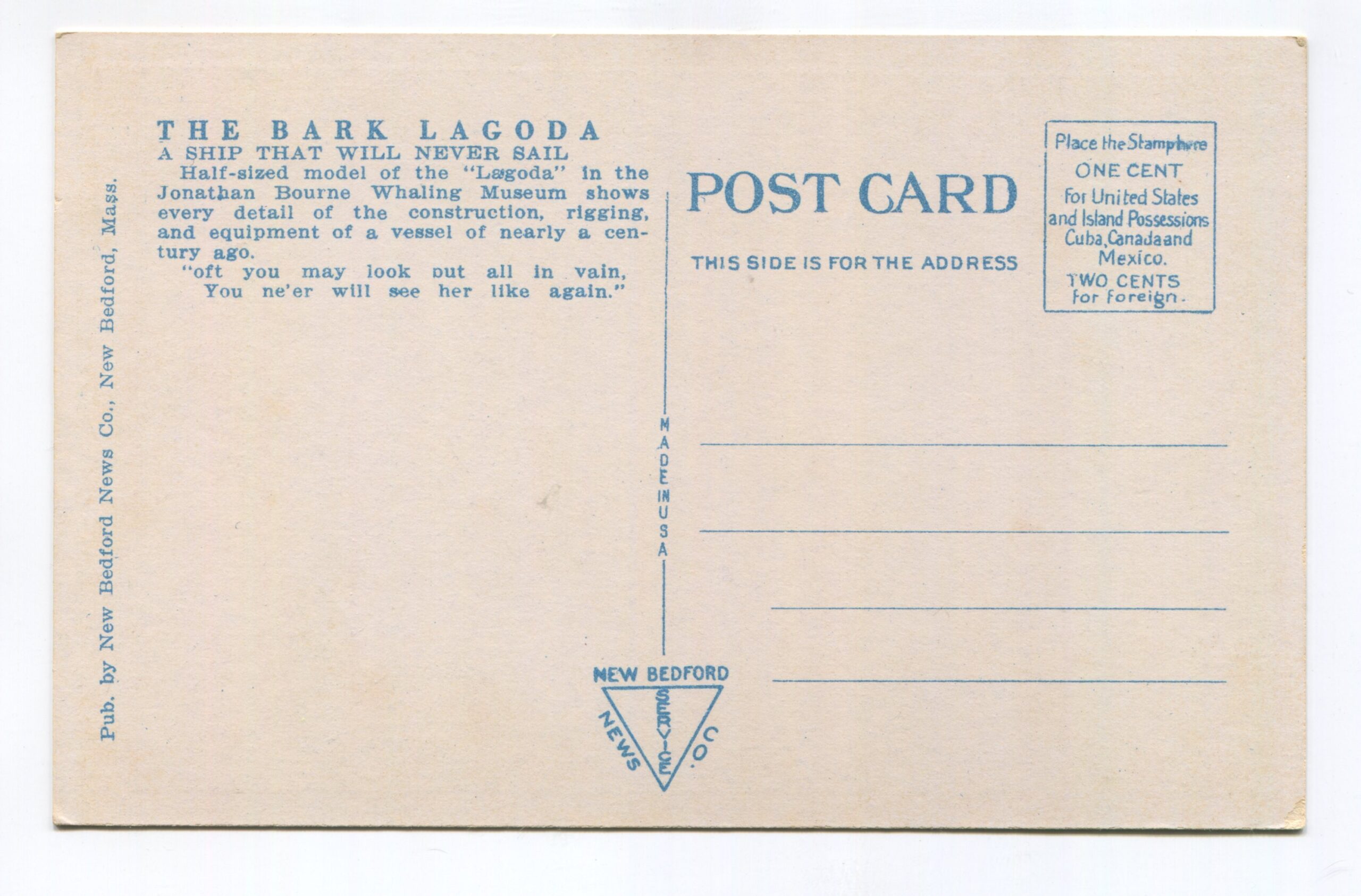 The Bark Lagoda Jonathan Bourne Whaling Museum New Bedford Massachusetts postcard