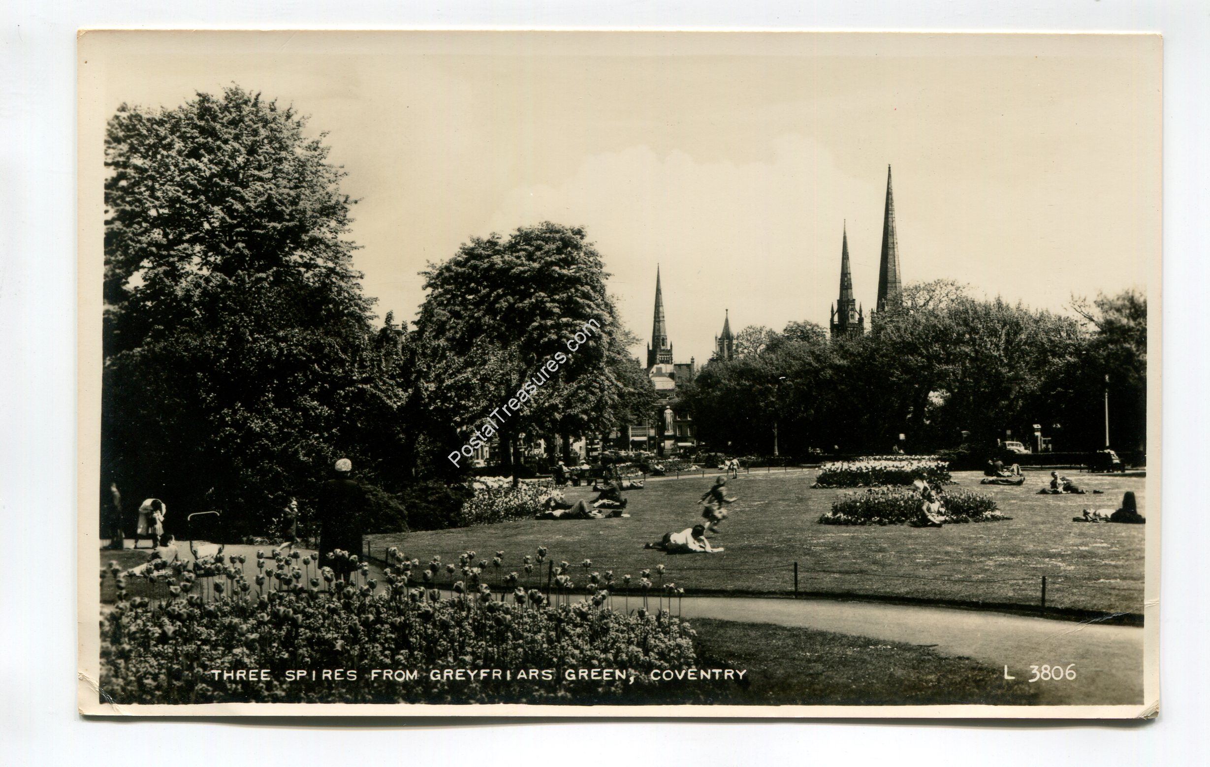 Three Spires from Greyfriars Green Coventry postcard