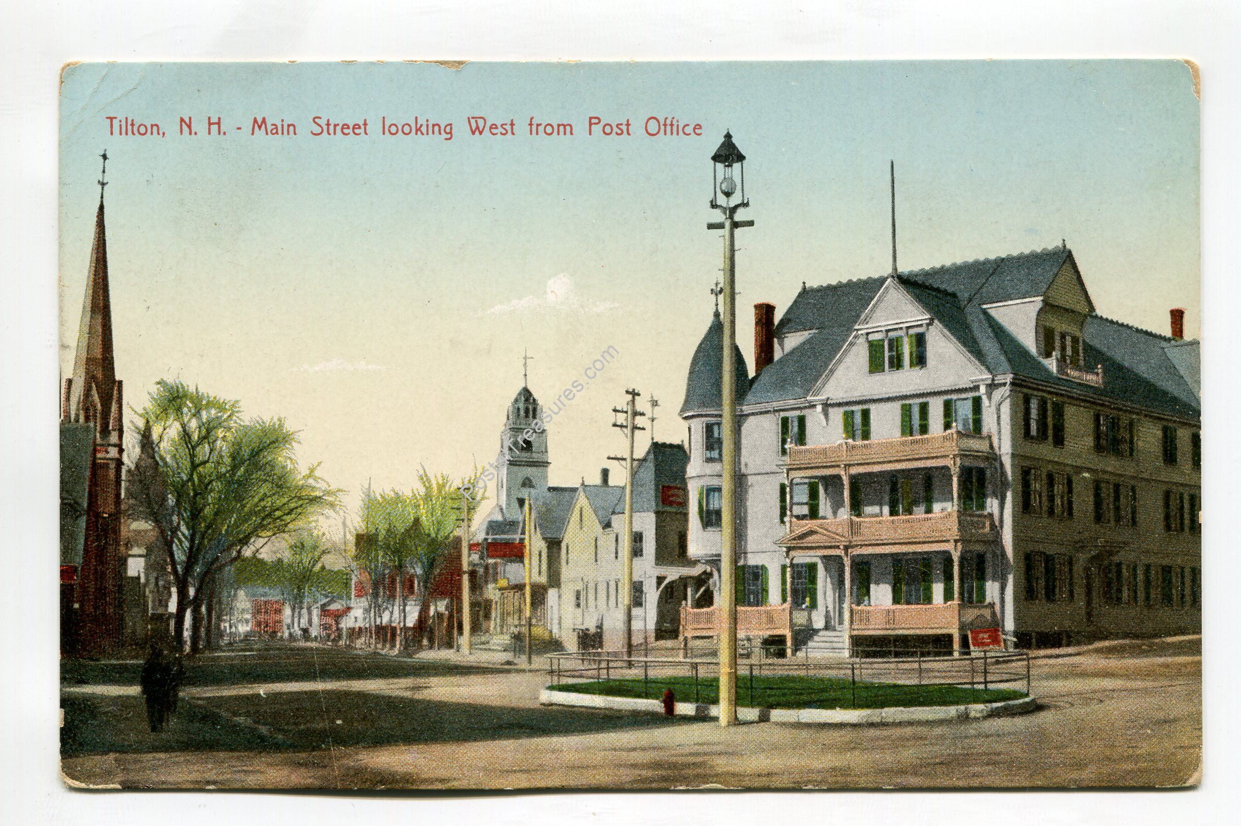 Main Street looking west from Post Office Tilton New Hampshire postcard