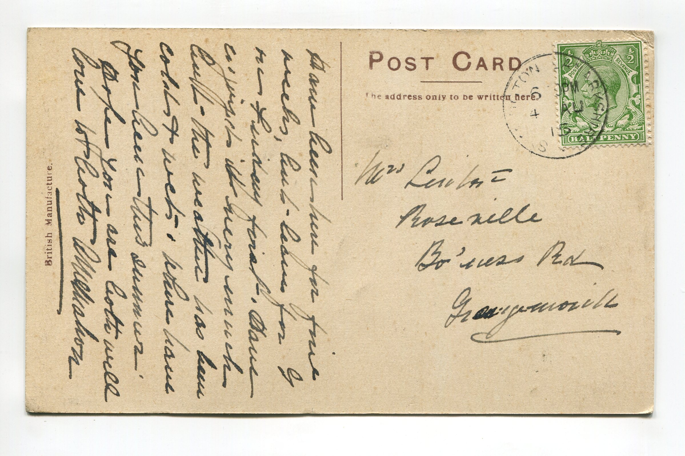 Condition – corner/edge wear, crease in corners, cancellation impression visible on card front, impression marks below card center, marks on card front, curl to card, soiling/marks