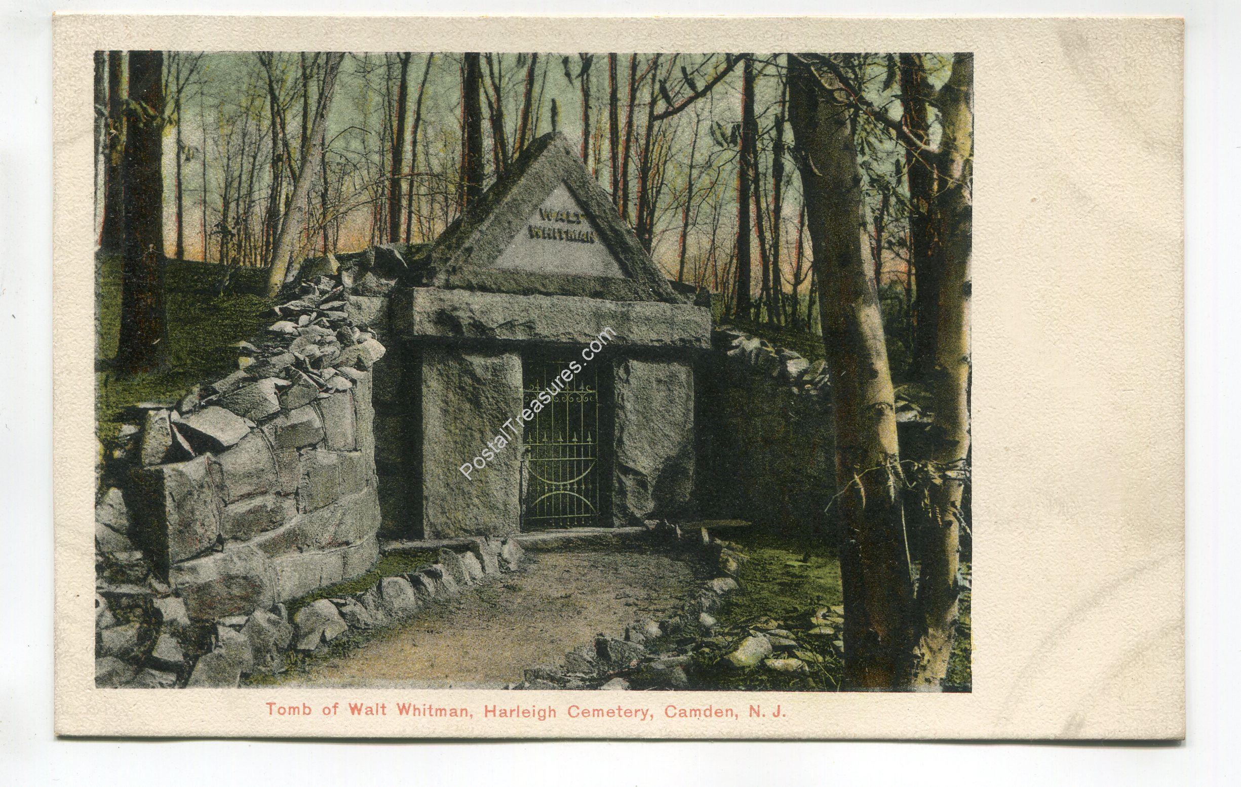 Tomb of Walt Whitman Harleigh Cemetery Camden New Jersey postcard