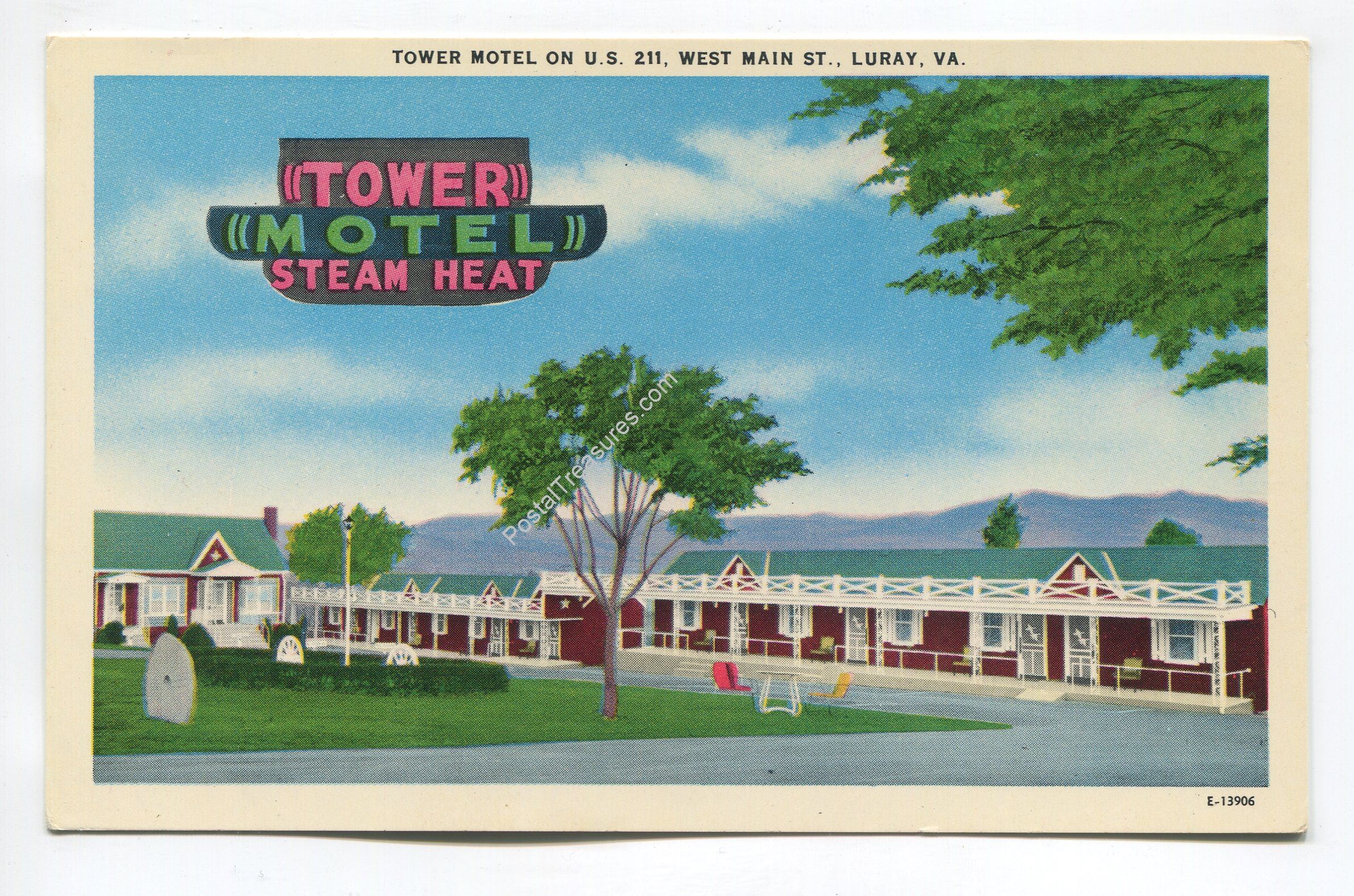 Tower Motel on US 211 West Main Street Luray Virginia postcard