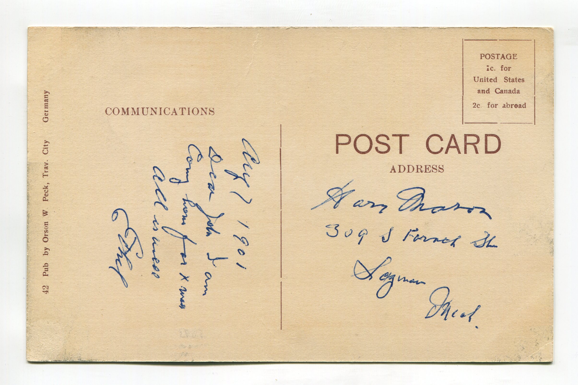 Condition – corner/edge wear, crease below center in right edge, soiling/marks
