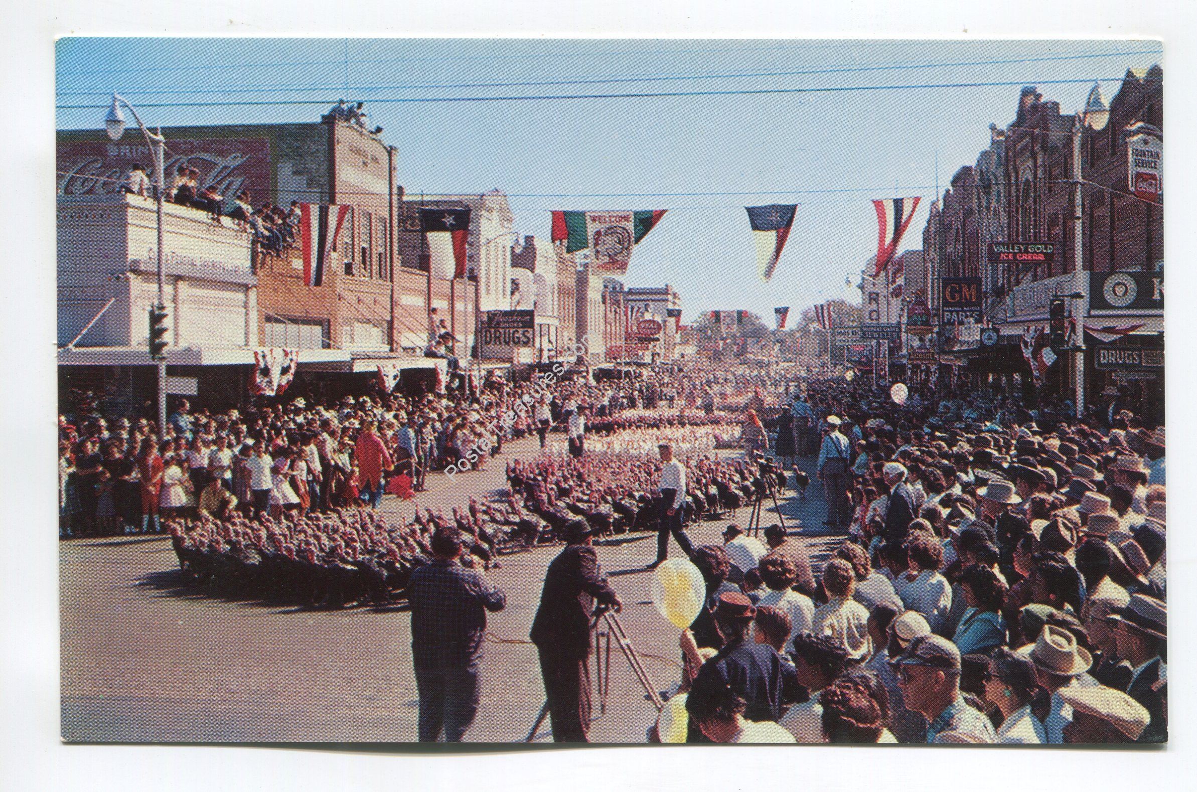 Turkey Trot down Main Street of Cuero Texas postcard