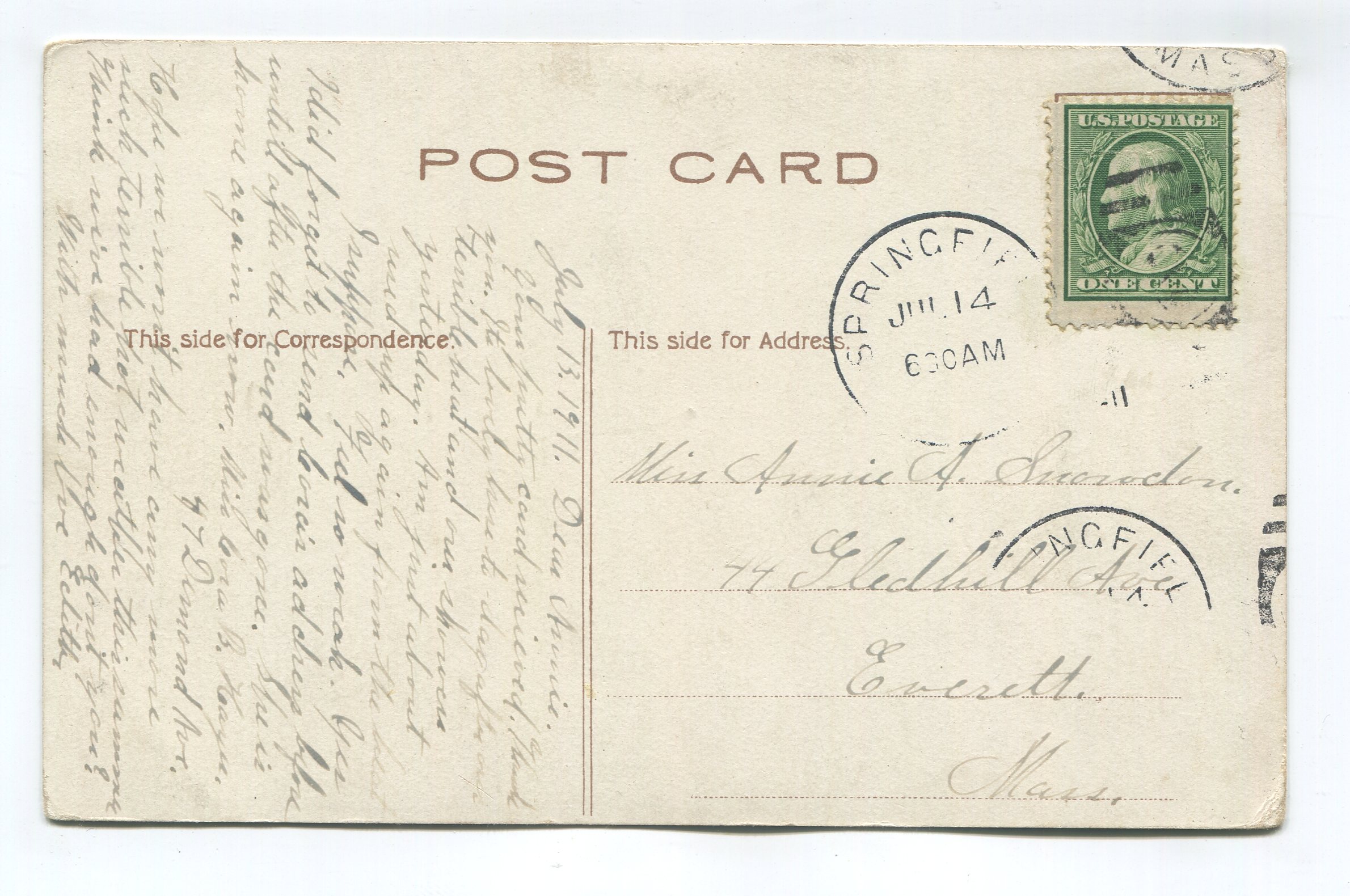 Condition – noticeable corner/edge wear, creases in corners, cancelation impression visible on card front, marks on card front, soiling/marks