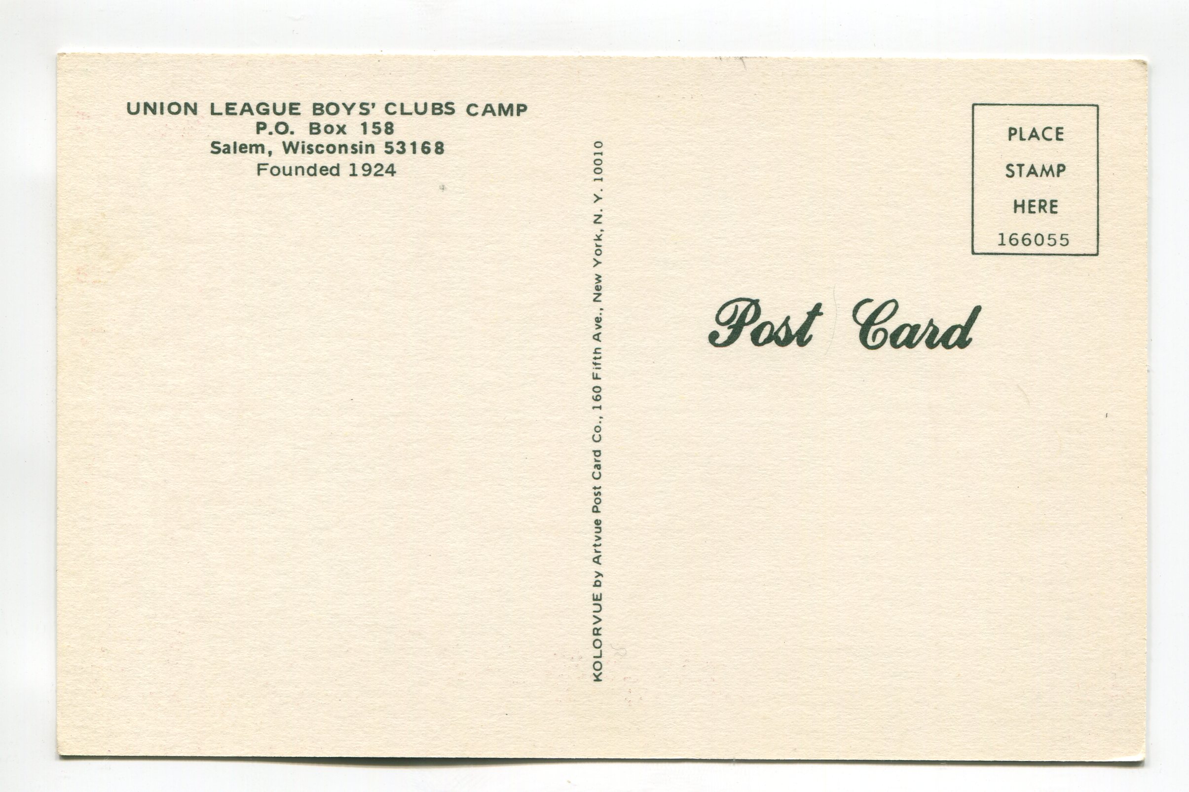 Union League Boys’ Club Camp Salem Wisconsin postcard
