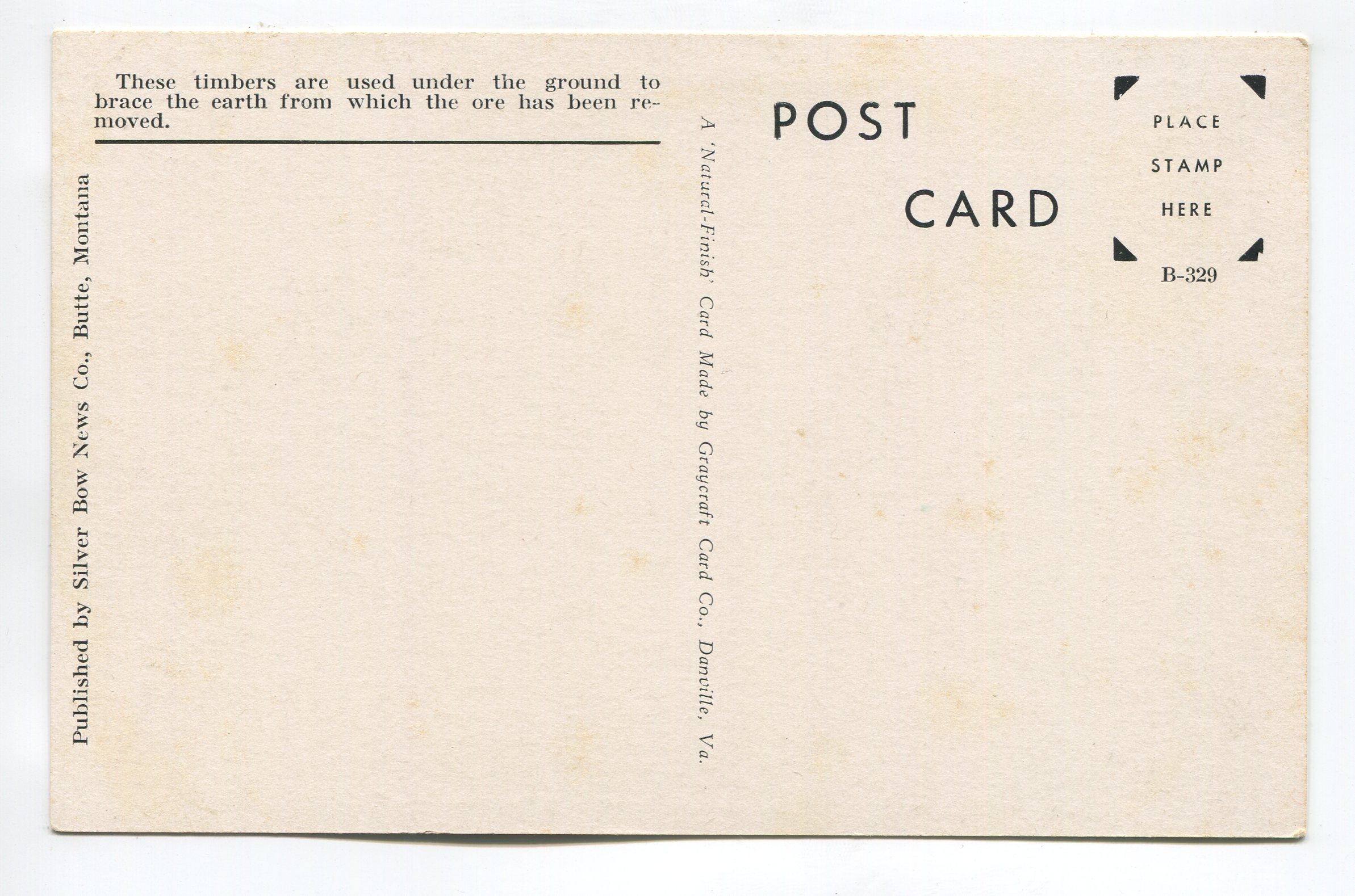 Unloading Timbers at Stewart Mine Butte Montana postcard