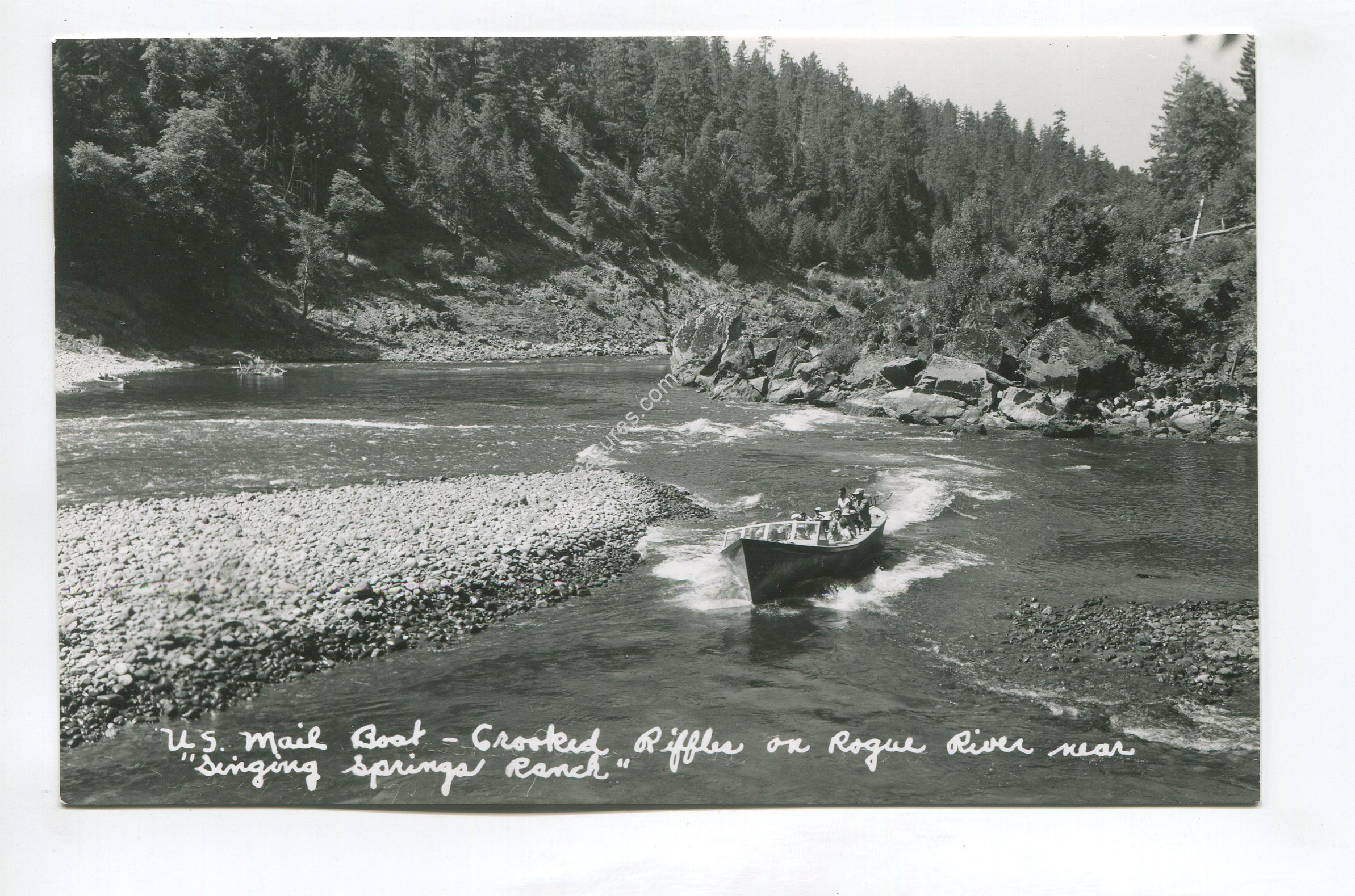 US Mail Boat Crooked Riffles on Rogue River near Singing Springs Ranch postcard