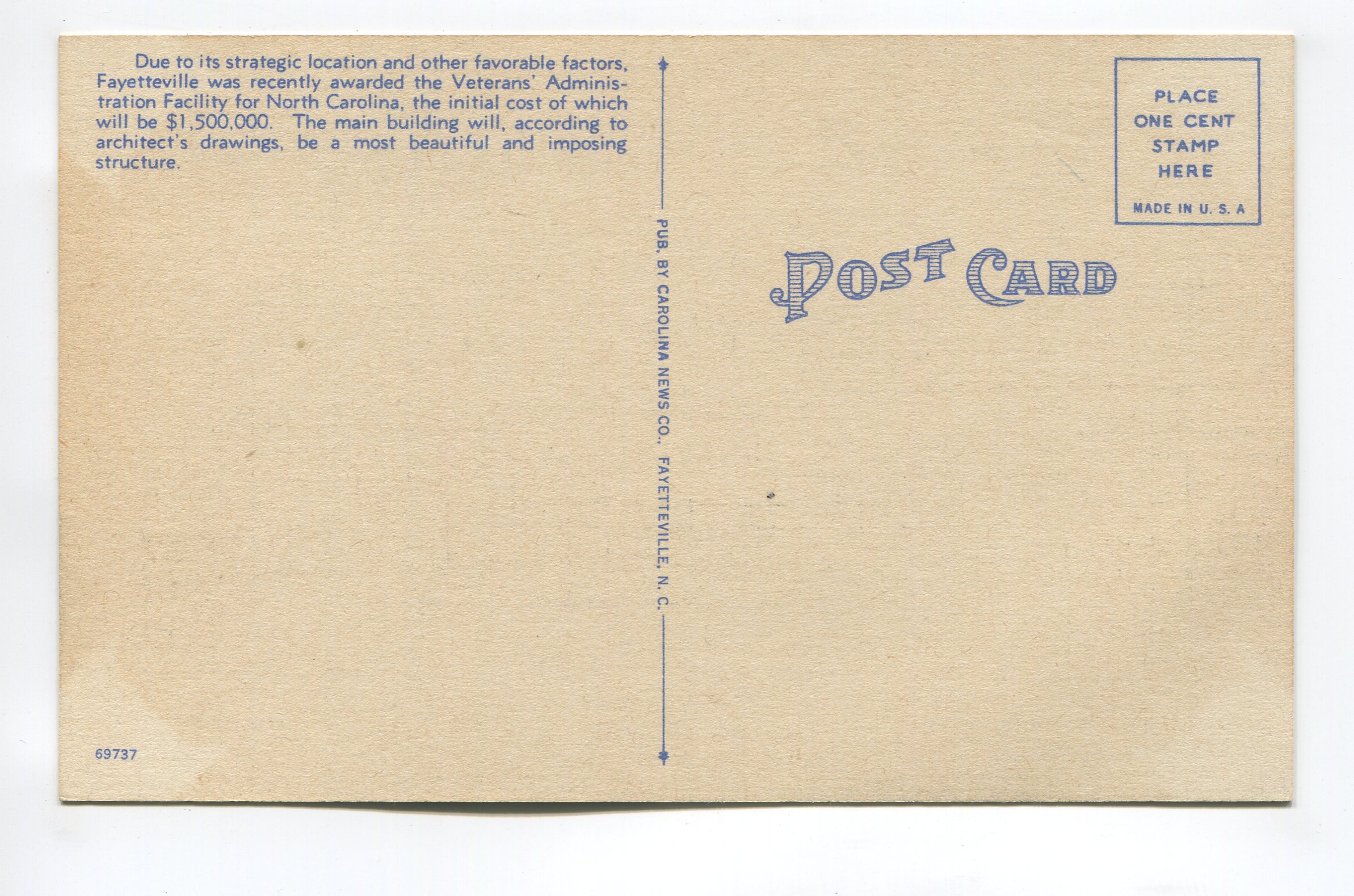 Veterans Hospital Fayetteville North Carolina postcard