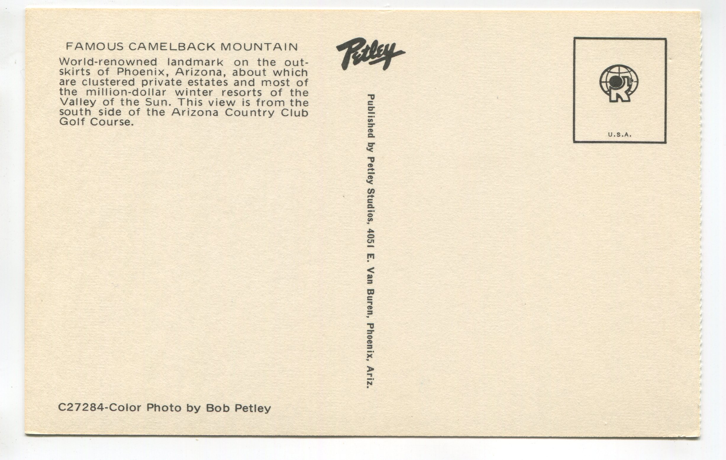 View of Camelback Mountain from Arizona Country Club Golf Course postcard