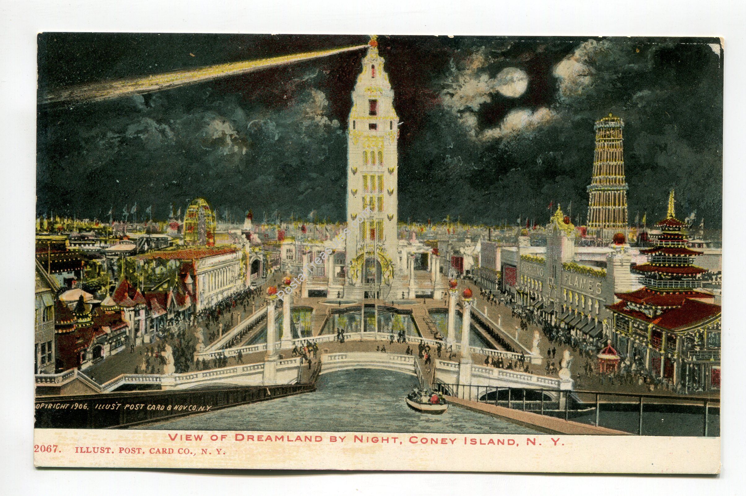 View of Dreamland by Night Coney Island New York postcard