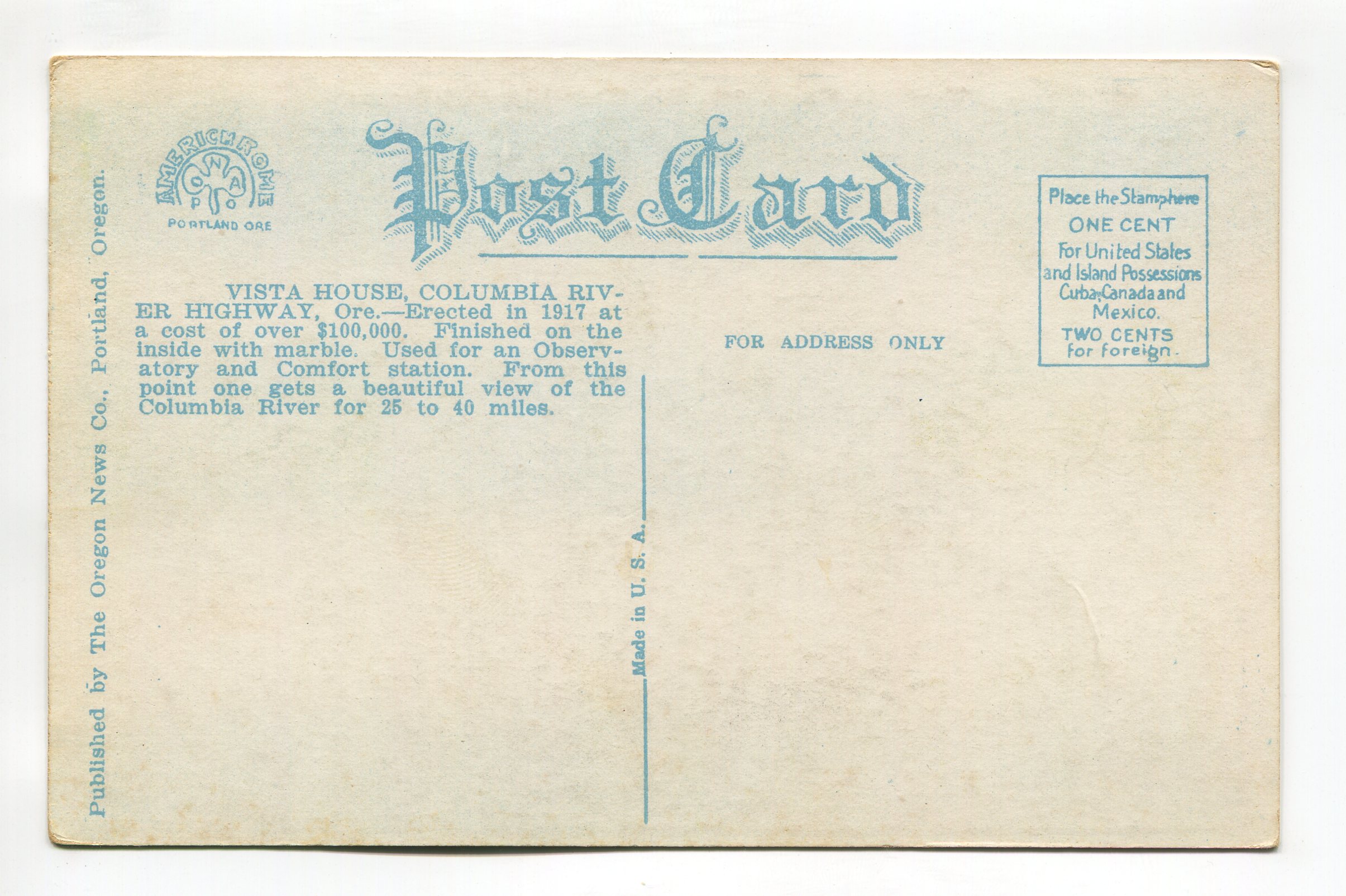 Vista House Columbia River Highway Oregon postcard