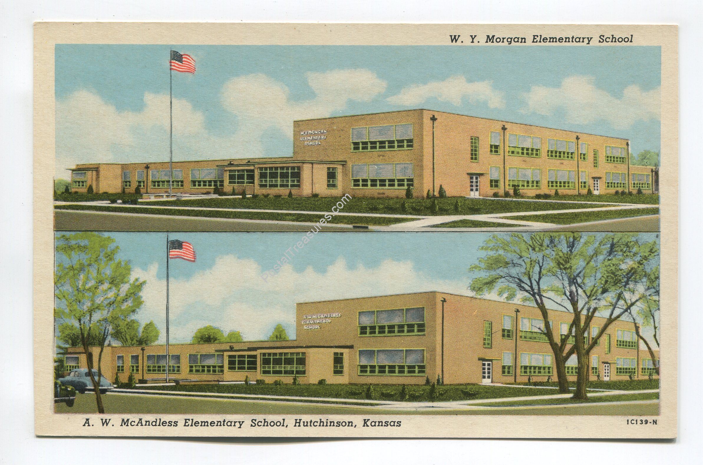 W Y Morgan Elementary School and A W McAndless Elementary School Hutchinson Kansas postcard