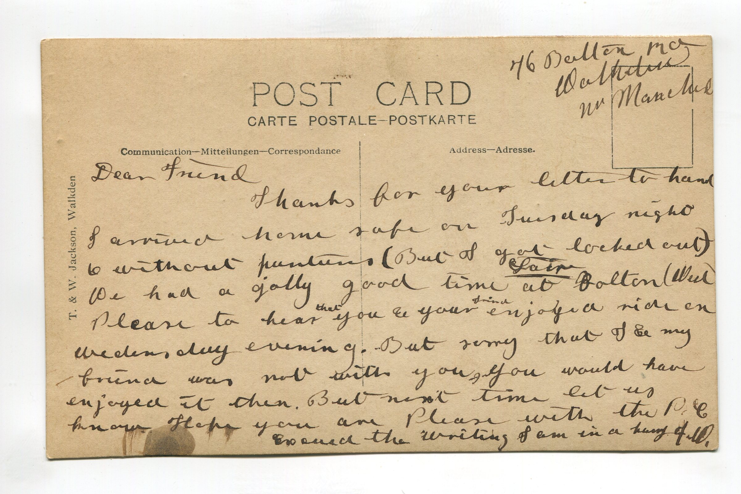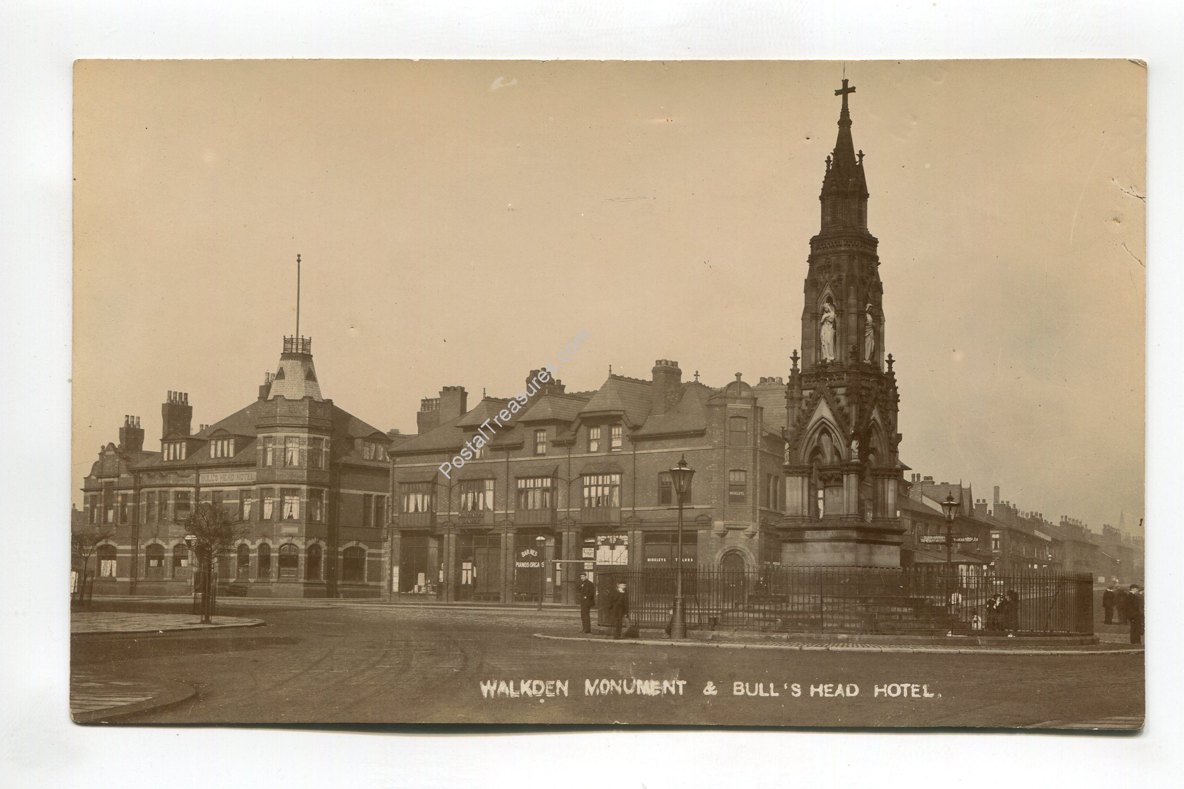 Walkden Monument and Bulls Head Hotel postcard