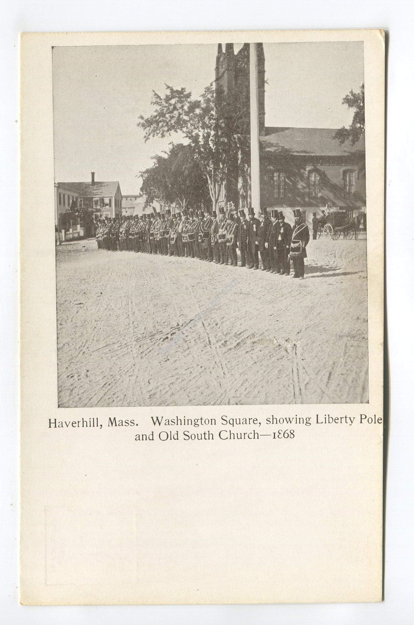 Washington Square showing Liberty Pole and Old South Church Haverhill Massachusetts 1868 postcard