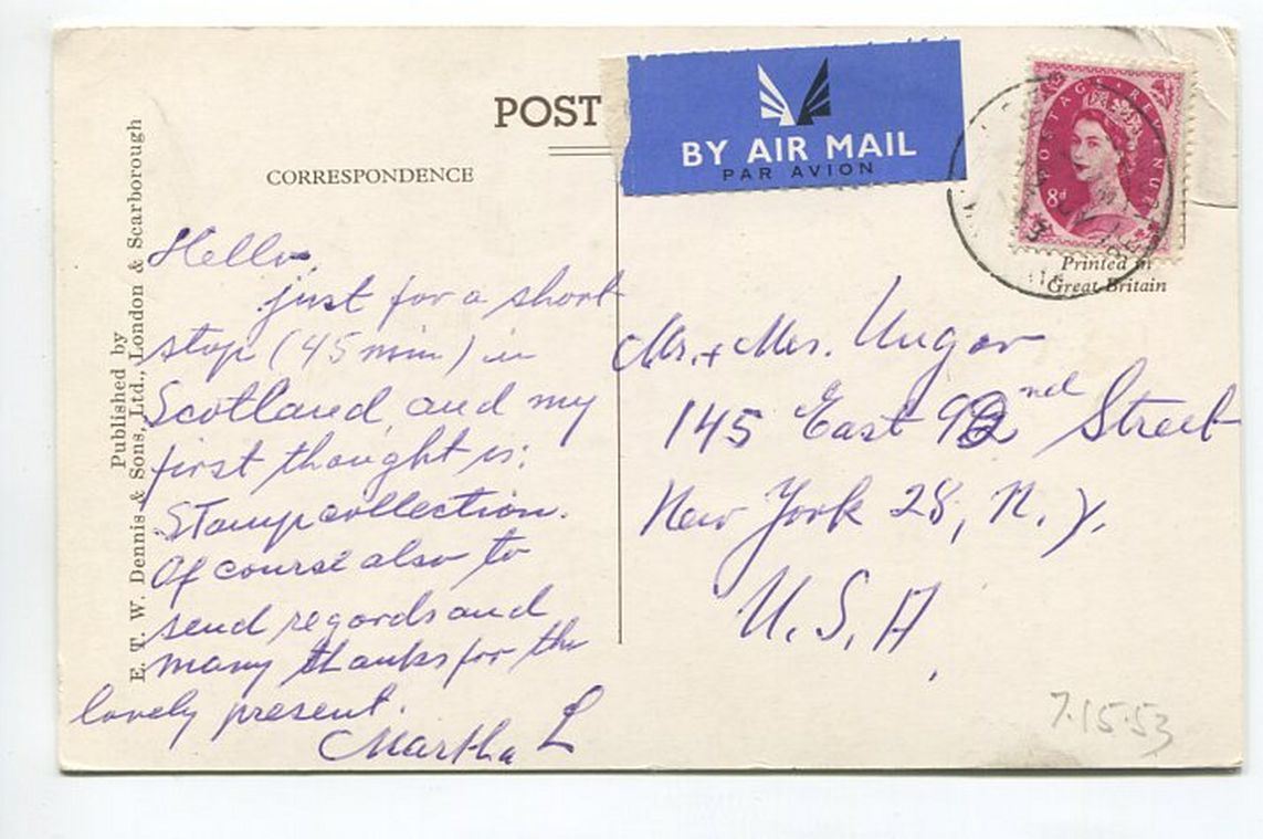 Condition – corner/edge wear, crease in top two corners, cancellation impression visible on card front, mark in skyline, crease in upper left edge, cracking on card front, soiling/marks