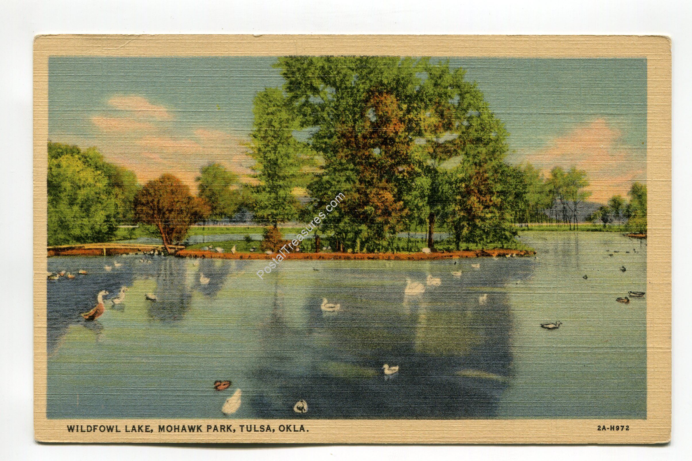 Wildfowl Lake Mohawk Park Tulsa Oklahoma postcard
