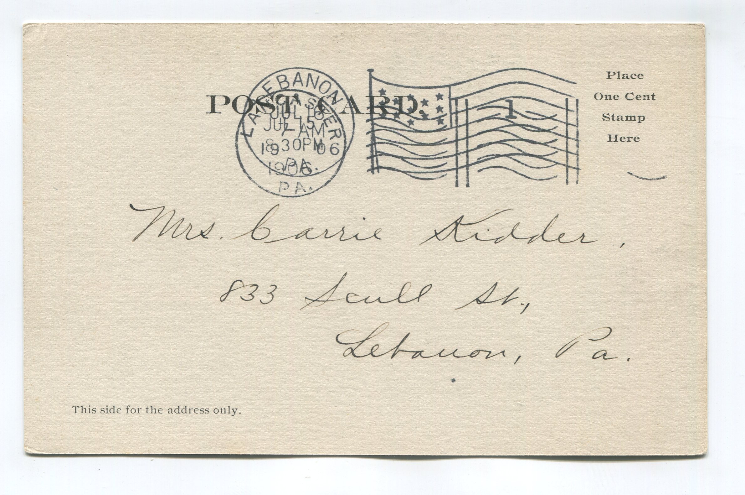 Postmark – 1906- stamp missing
