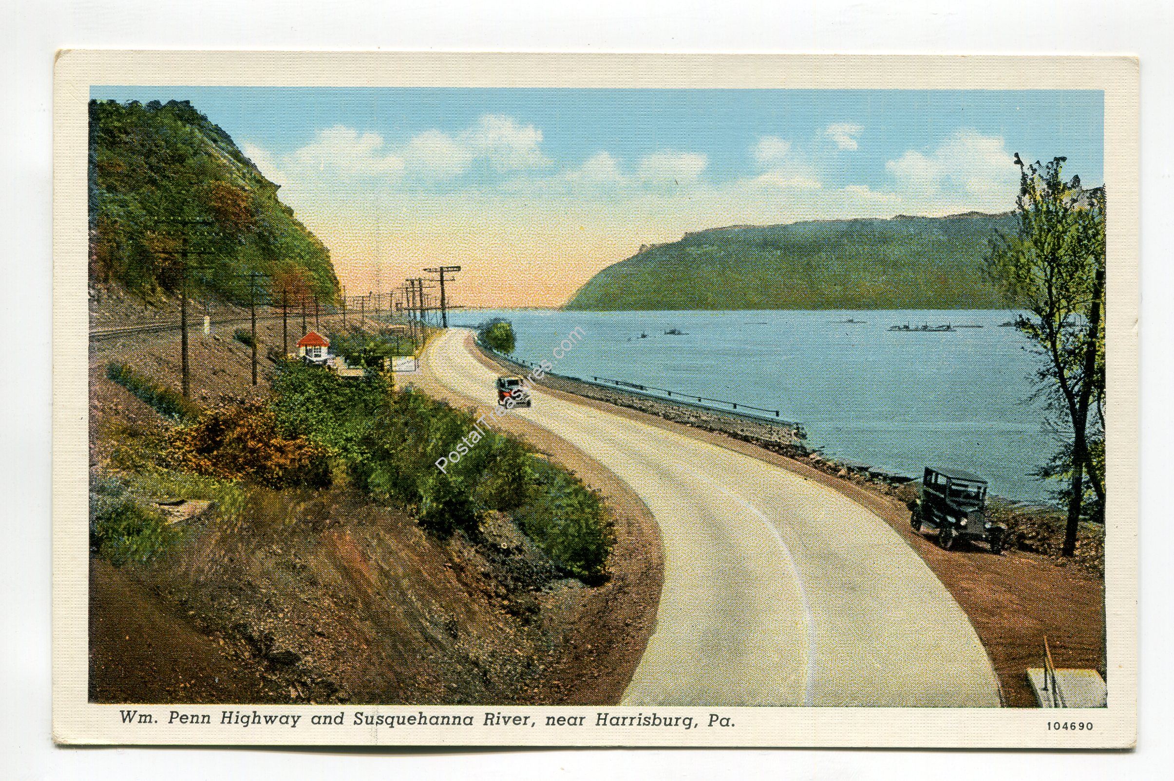 William Penn Highway and Susquehanna River near Harrisburg Pennsylvania postcard