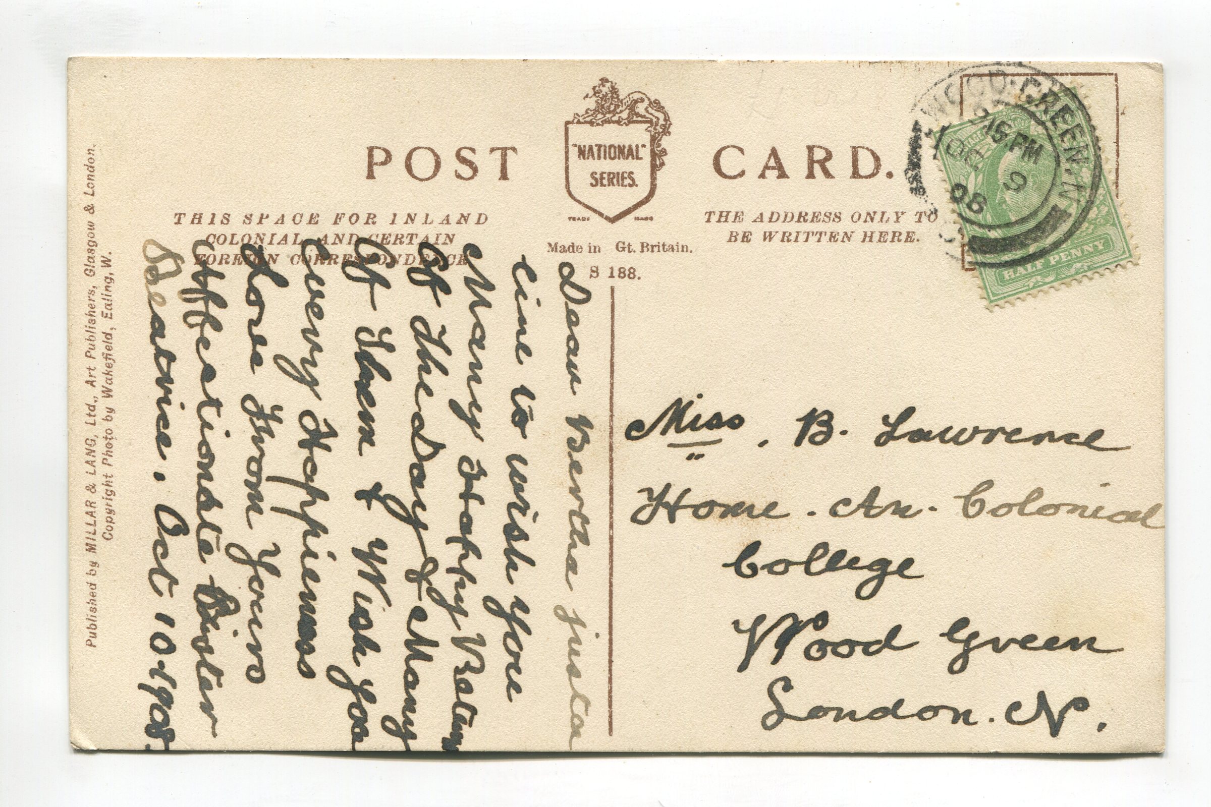 Condition – noticeable corner/edge wear, crease in corners, cancellation impression/marks visible on card front, soiling/marks