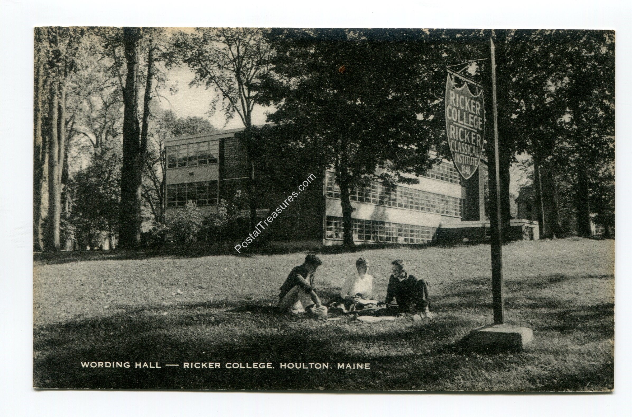 Wording Hall Ricker College Houlton Maine postcard