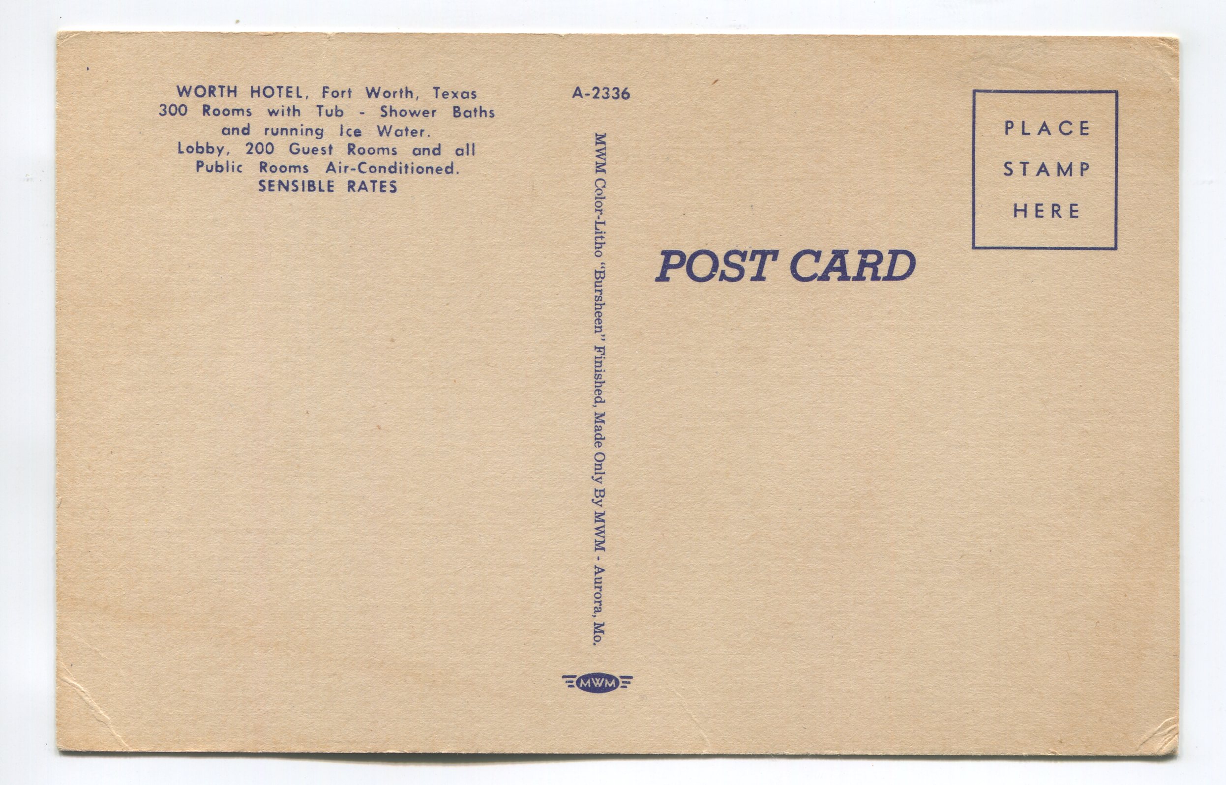 Worth Hotel Fort Worth Texas postcard