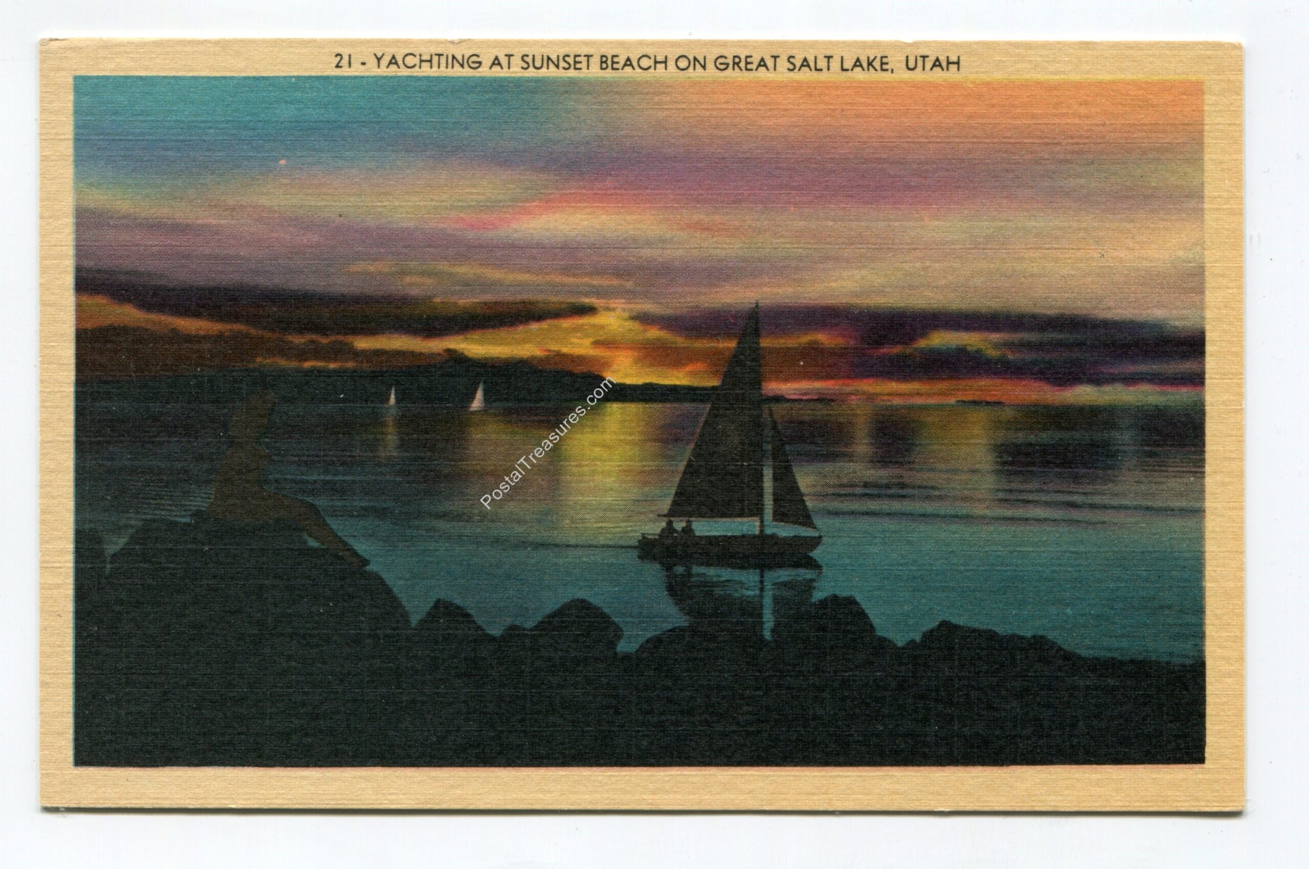 Yachting at Sunset Beach on Great Salt Lake Utah postcard