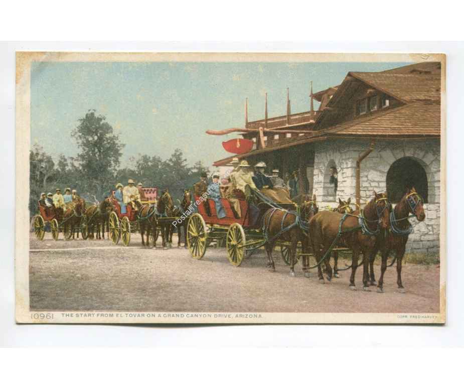 The Start from El Tovar on a Grand Canyon Drive Arizona postcard
