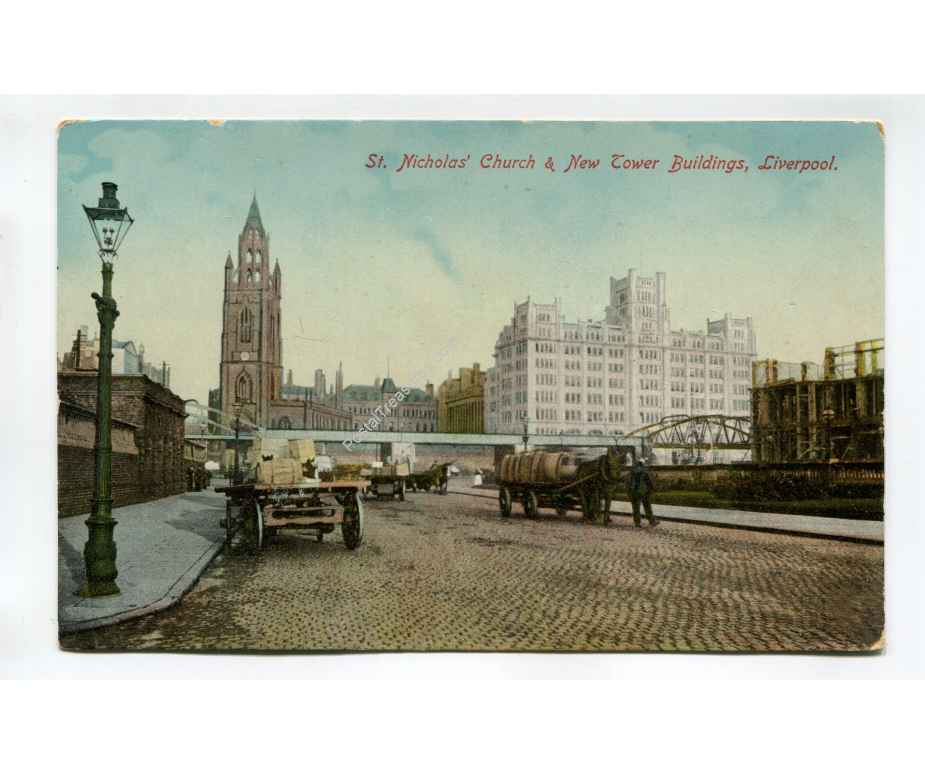 St Nicholas Church and New Tower Buildings Liverpool postcard